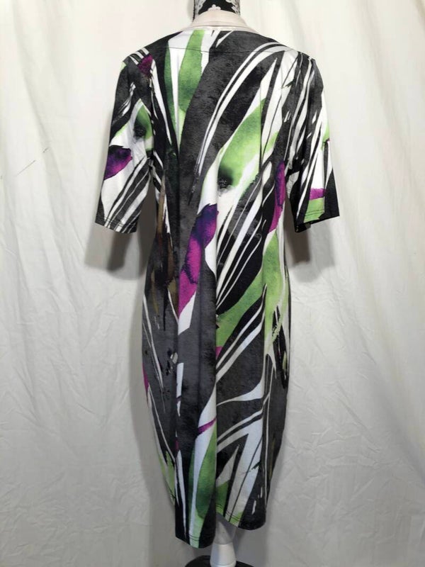 Ophilia zwart print jurk met kruisbandjes op de borst maat 48
