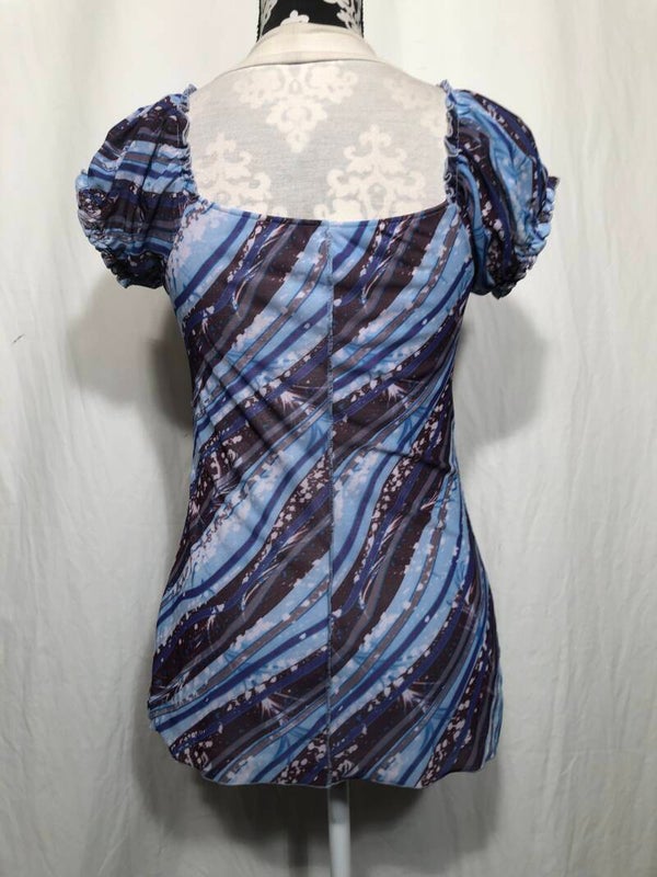 Geisha blauw print zomer top die ook offshoulder gedragen kan worden maat XS