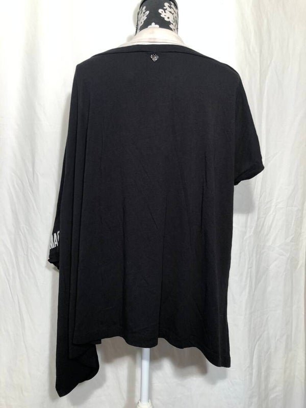 Mat zwart a-symmetrisch vleermuis tuniek met witte opdruk #LOVEMEMA(T)LY maat 42/44