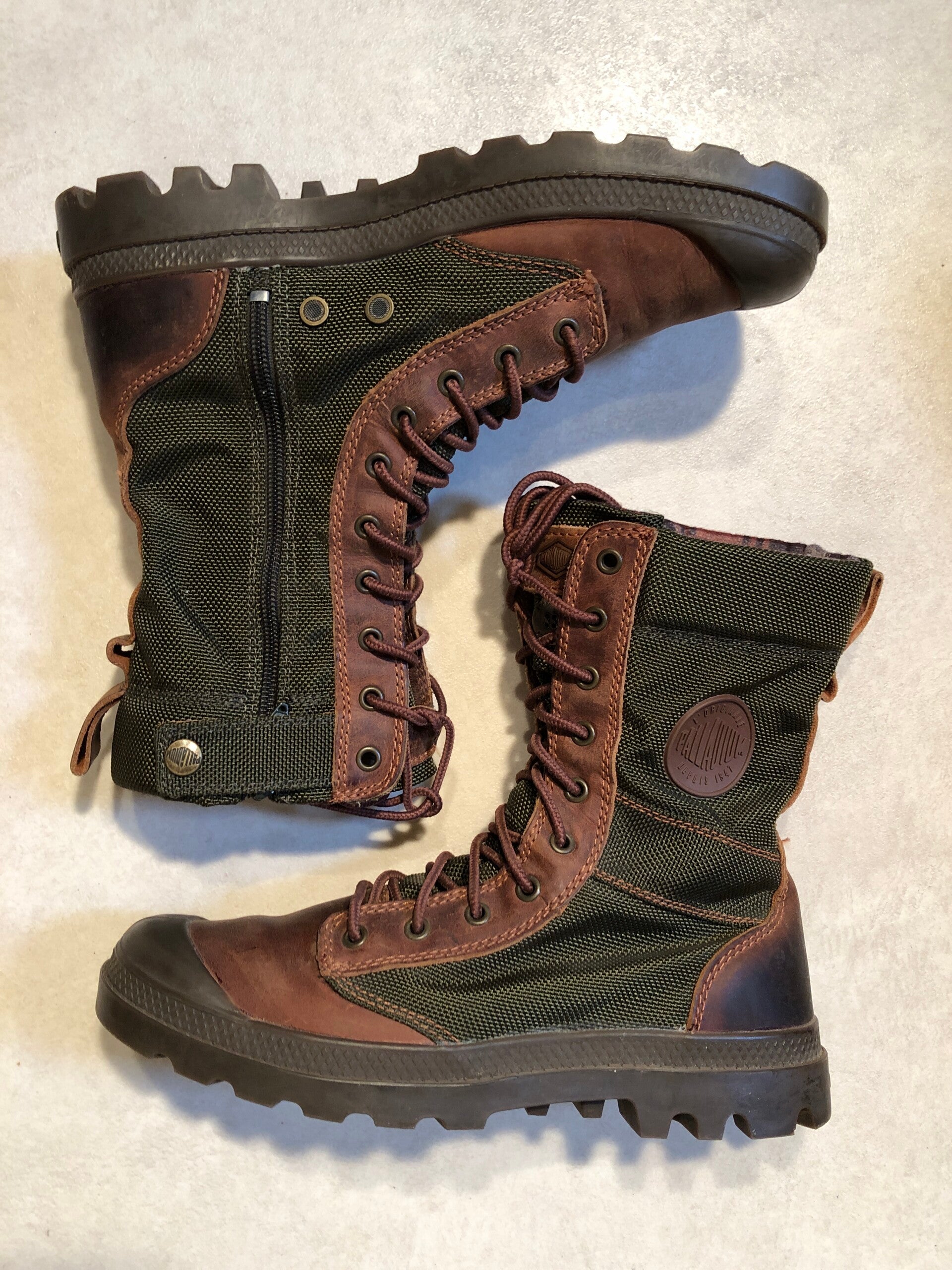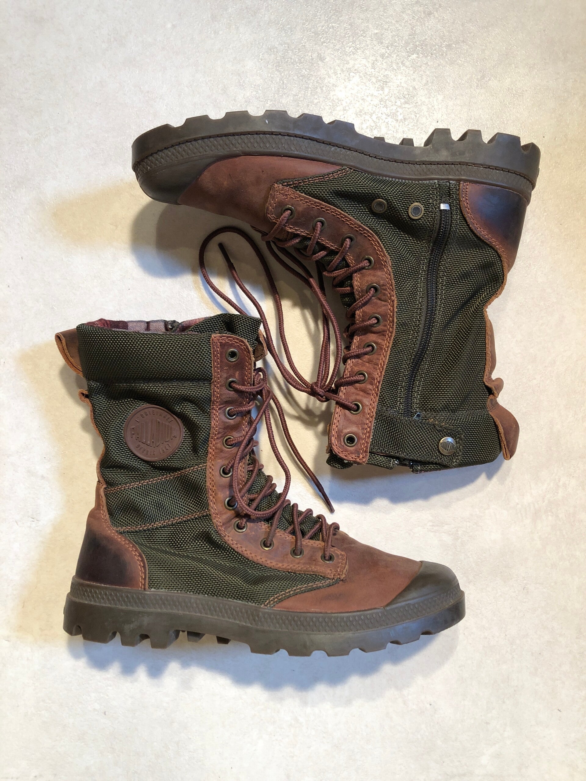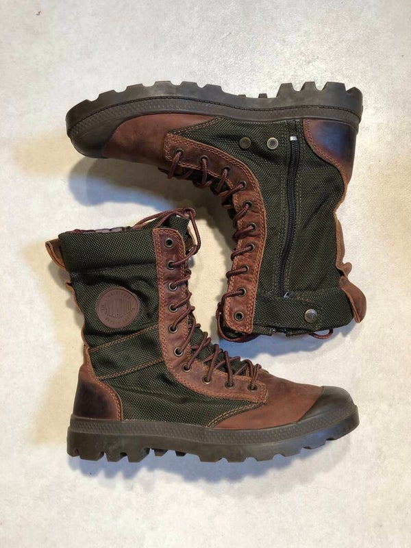 Palladium groen/bruine outdoor veter boots met rits op de zijkanten maat 42
