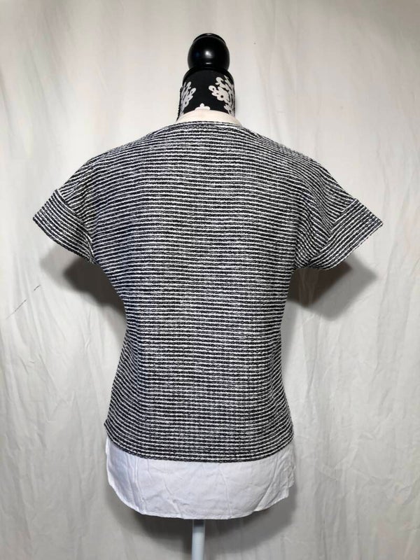 Esprit zwart/wit truitje afgewerkt met witte katoenen rand aan de onderkant maat S