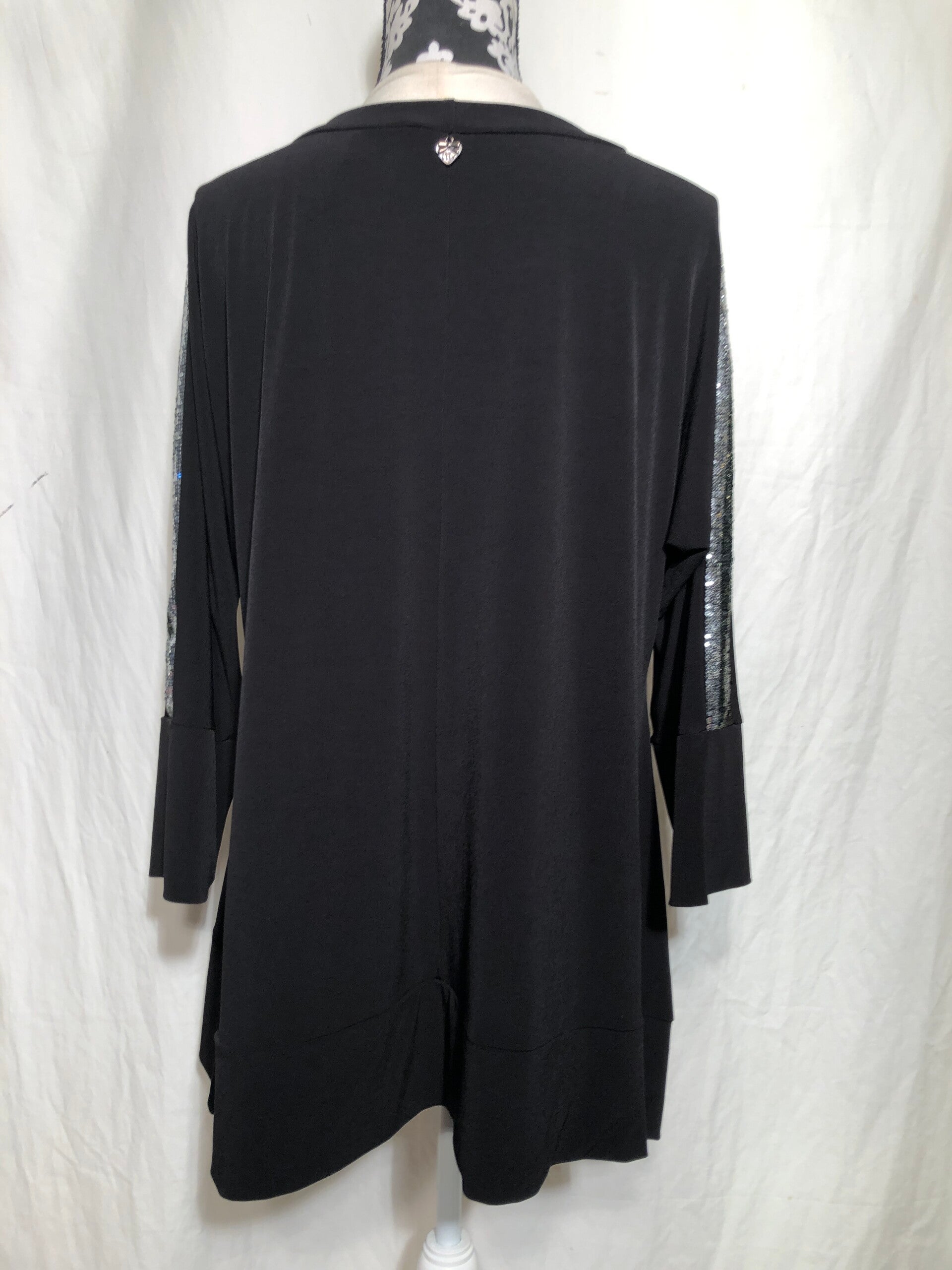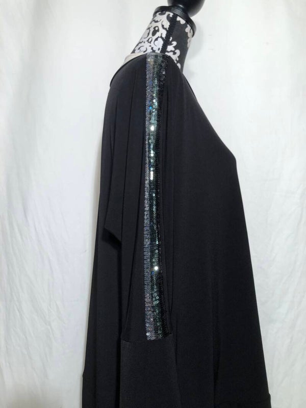 Mat zwart tuniek met pailletten op de mouwen maat 42/44