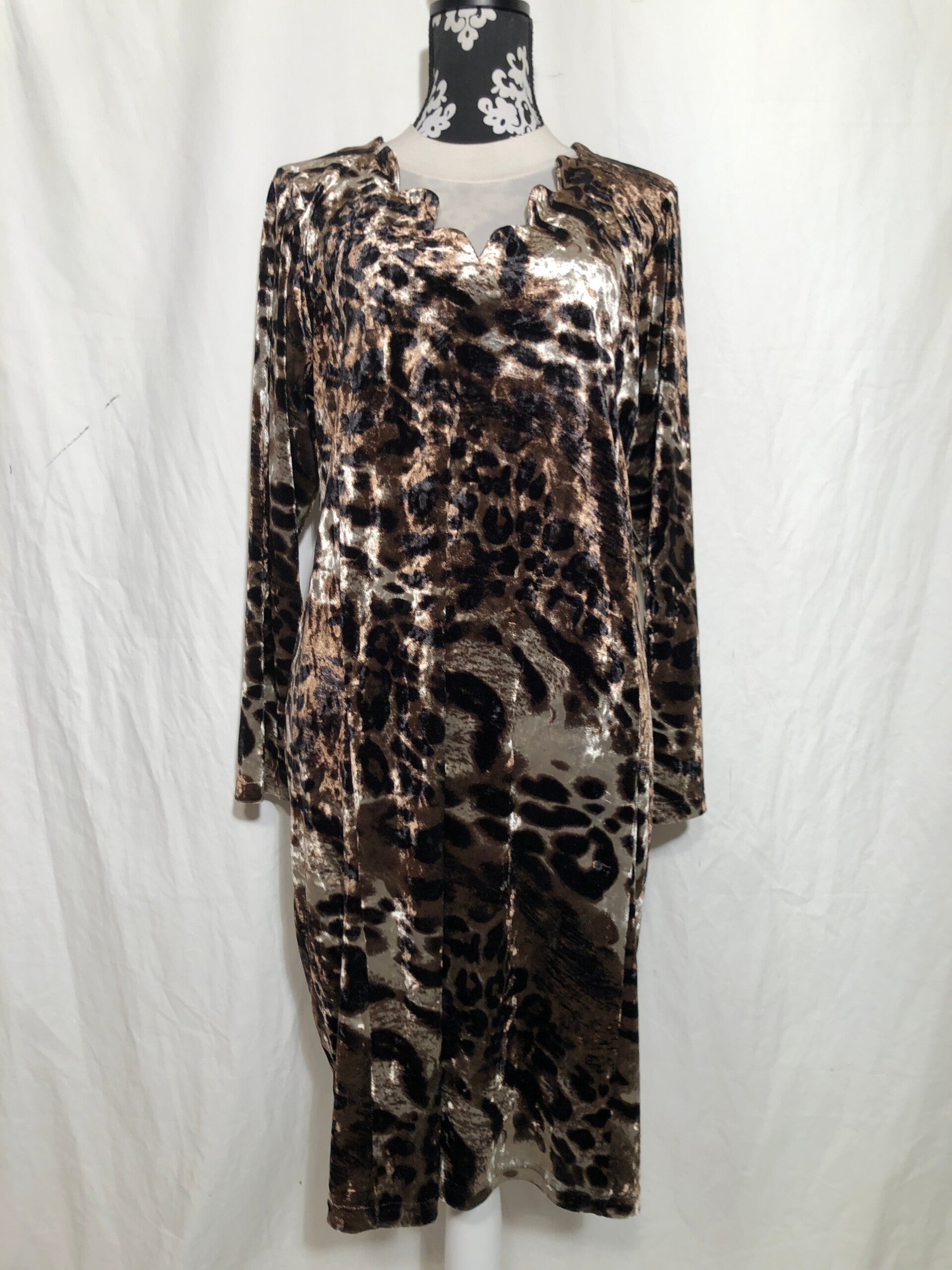 Ophilia bruin velours Leopard print jurk maat 46/48