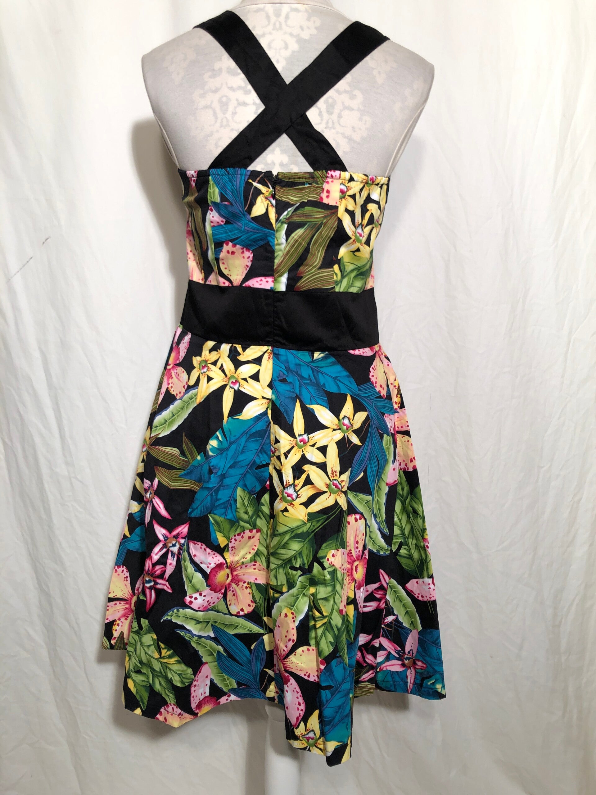 Dancing days by Banned zwart gebloemde retro halterjurk met verstelbare schouderbandjes maat XL