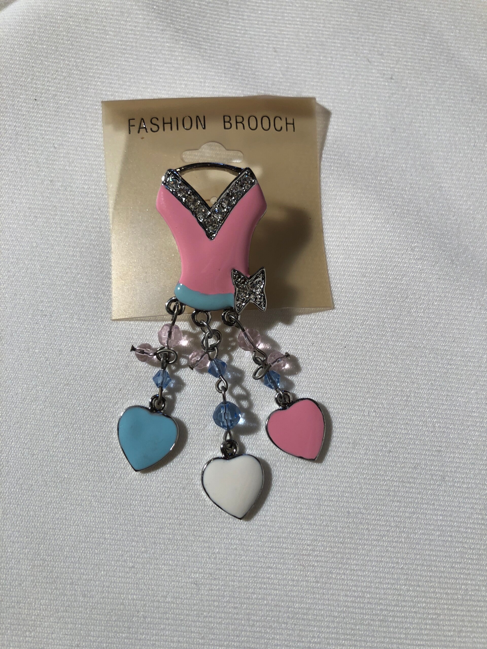 Broche in de vorm van een buste met kraaltjes, hartjes en strassteentjes