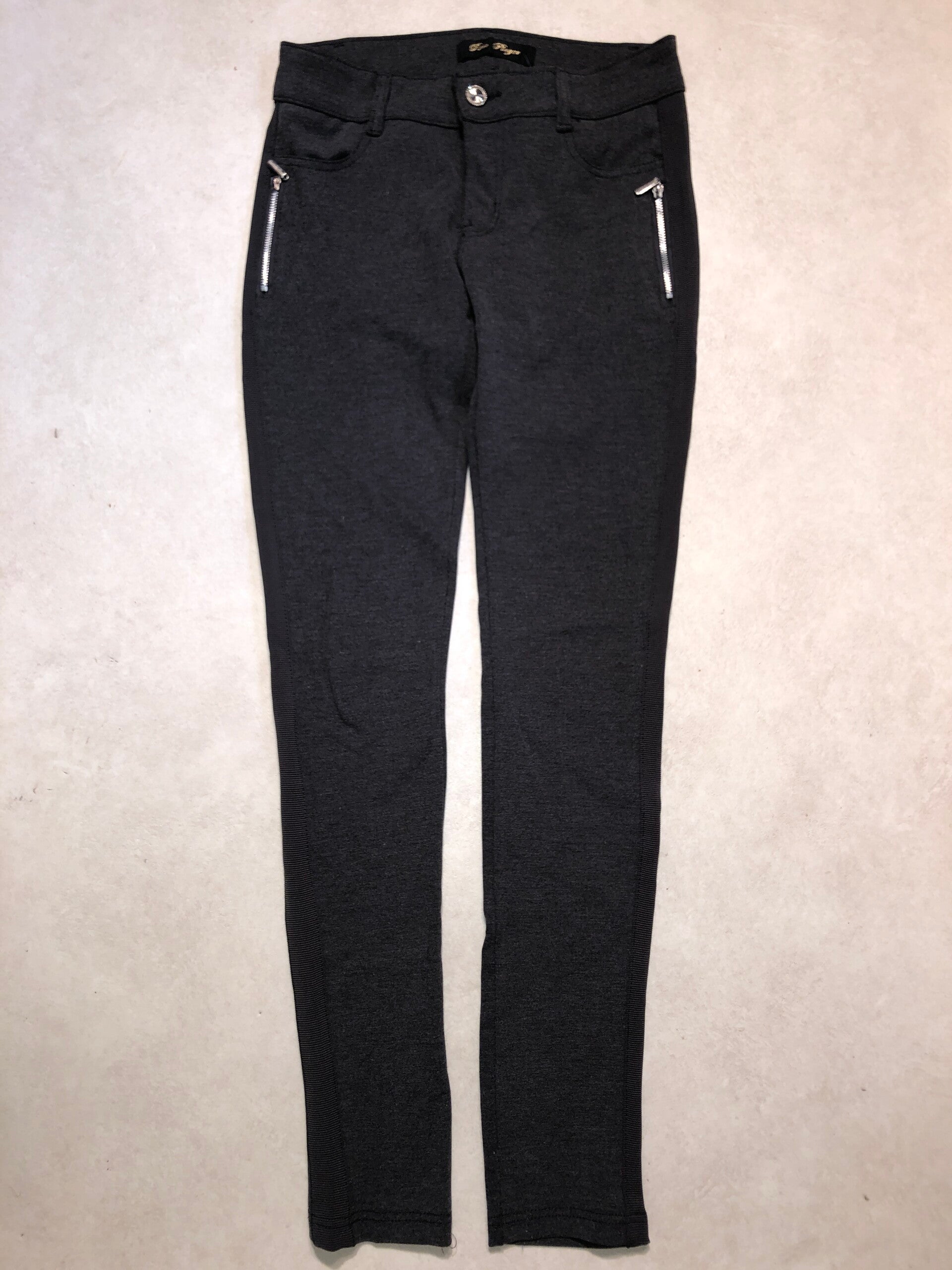 Rose Player geijze strakke broek met sierritsjes op de voorzijde maat S