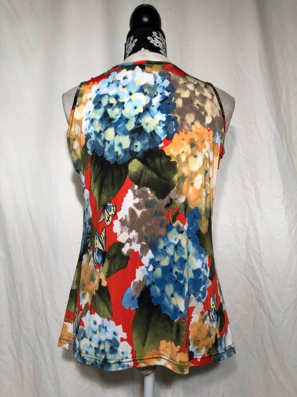 Mer & Sud meerkleurige waterval top met hortensia's en vlinders maat M