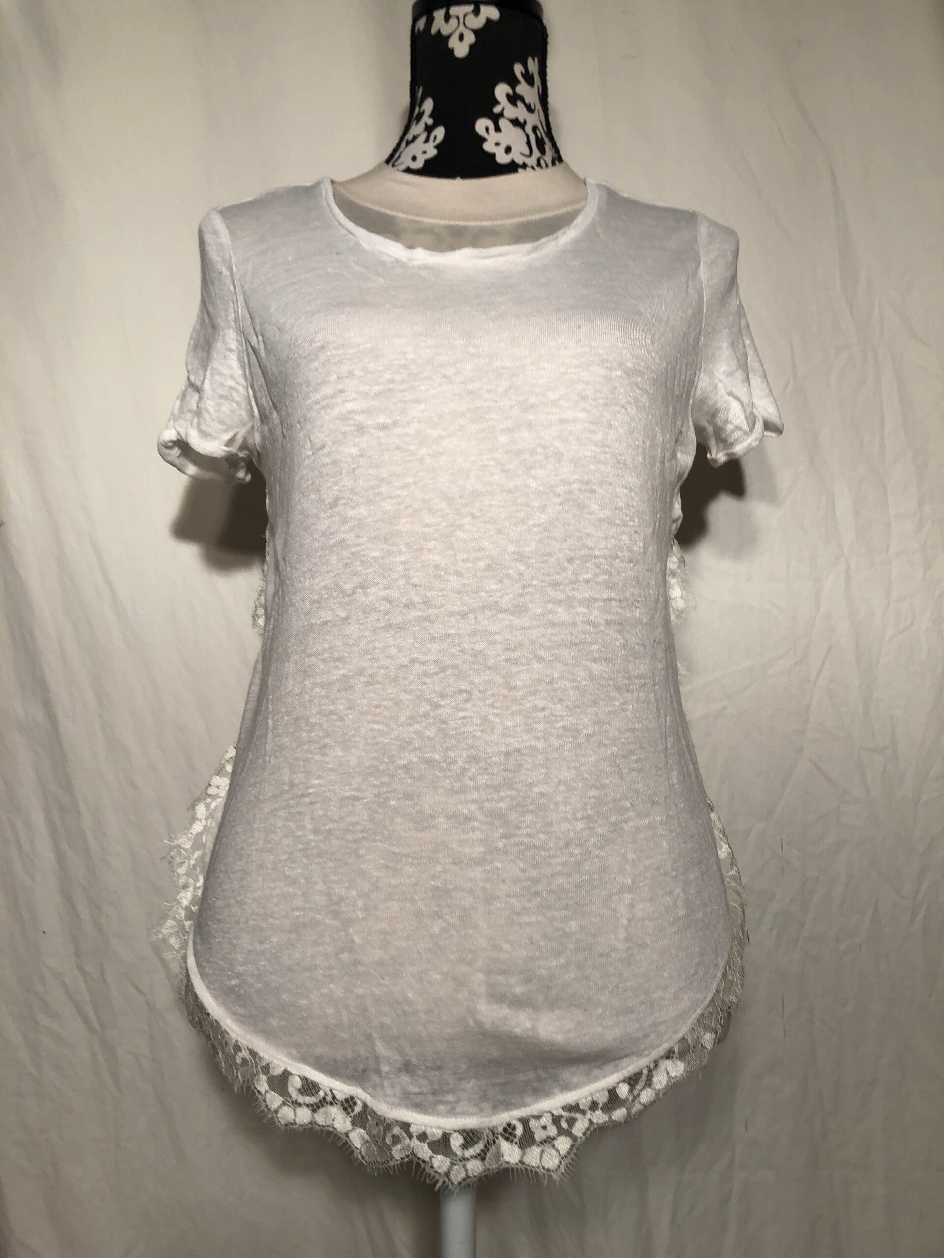 Le temps de cerises wit linnen T-shirt met kant langs de zij maat M