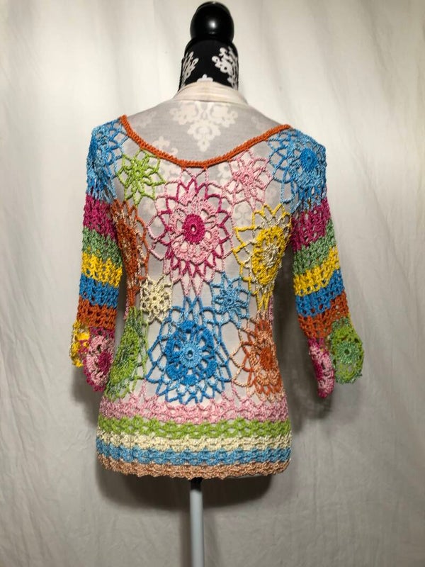 meerkleurig gehaakte zomer top met driekwart mouwen maat M