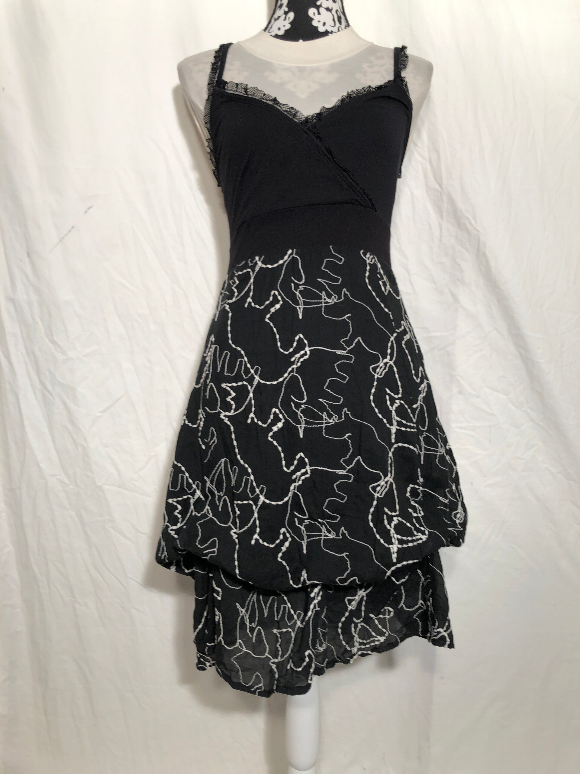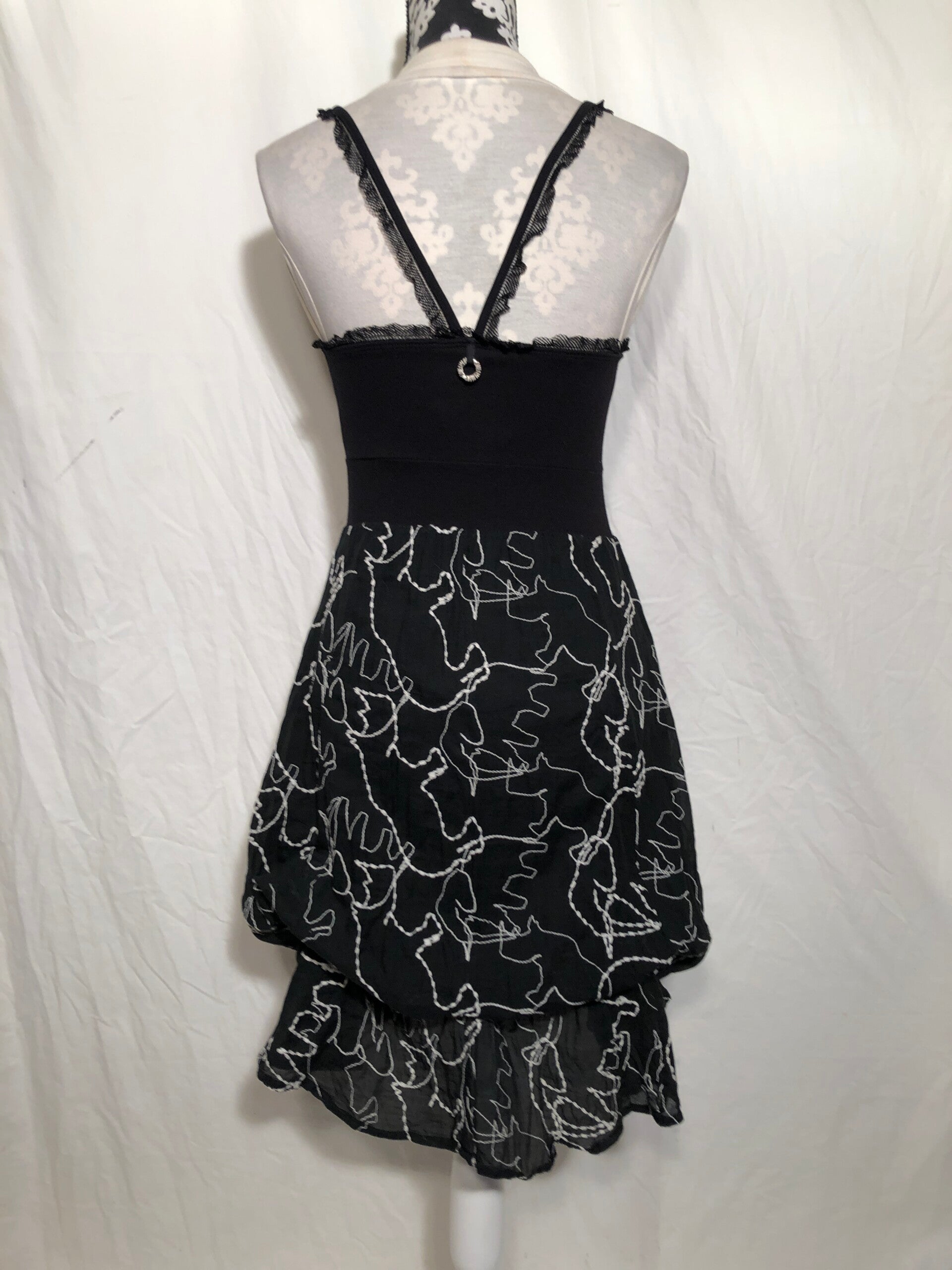 Save the Queen zwarte jurk met wit borduur en strikjes aan de binnenkant voor het opbollend effect maat M