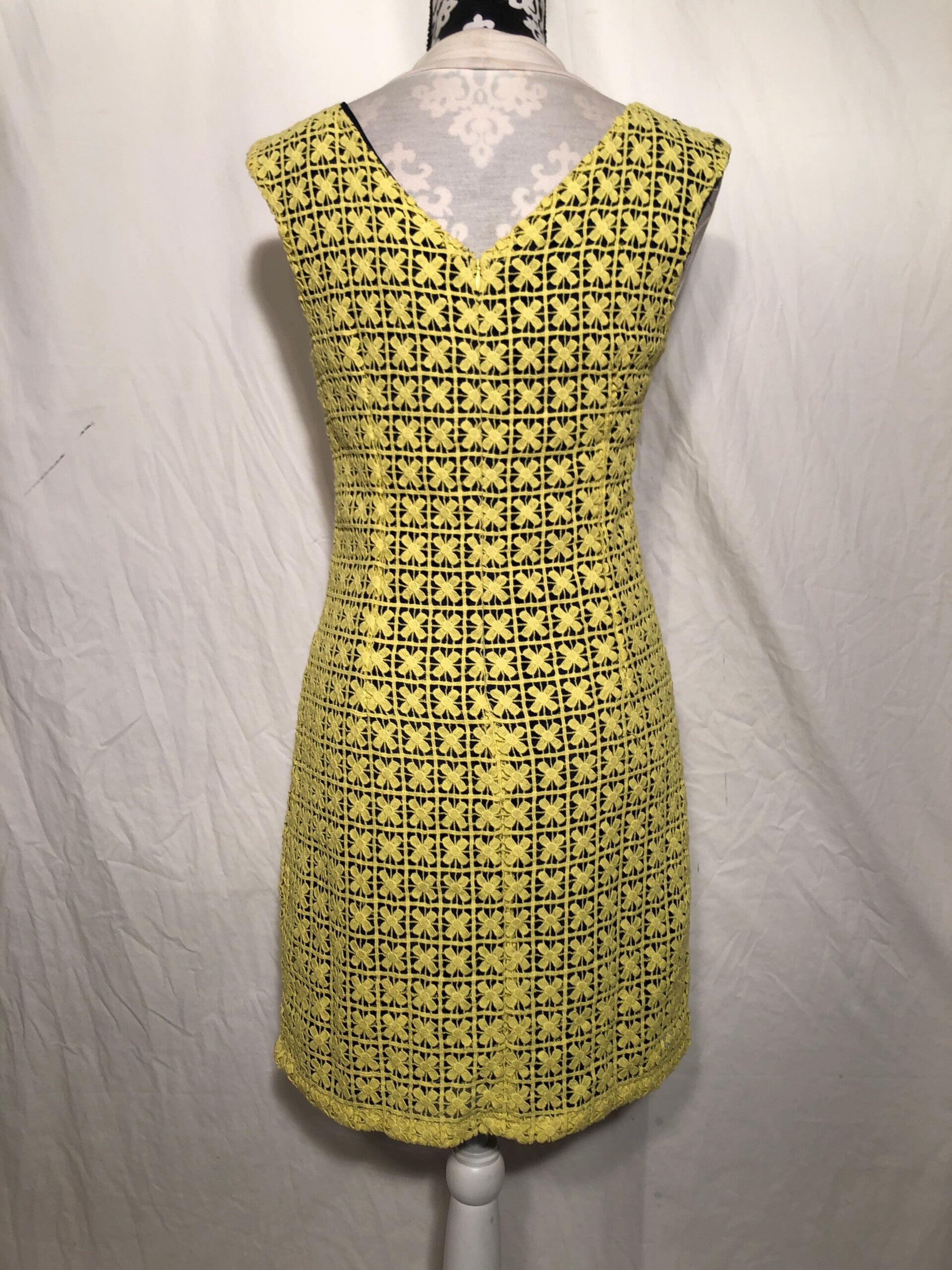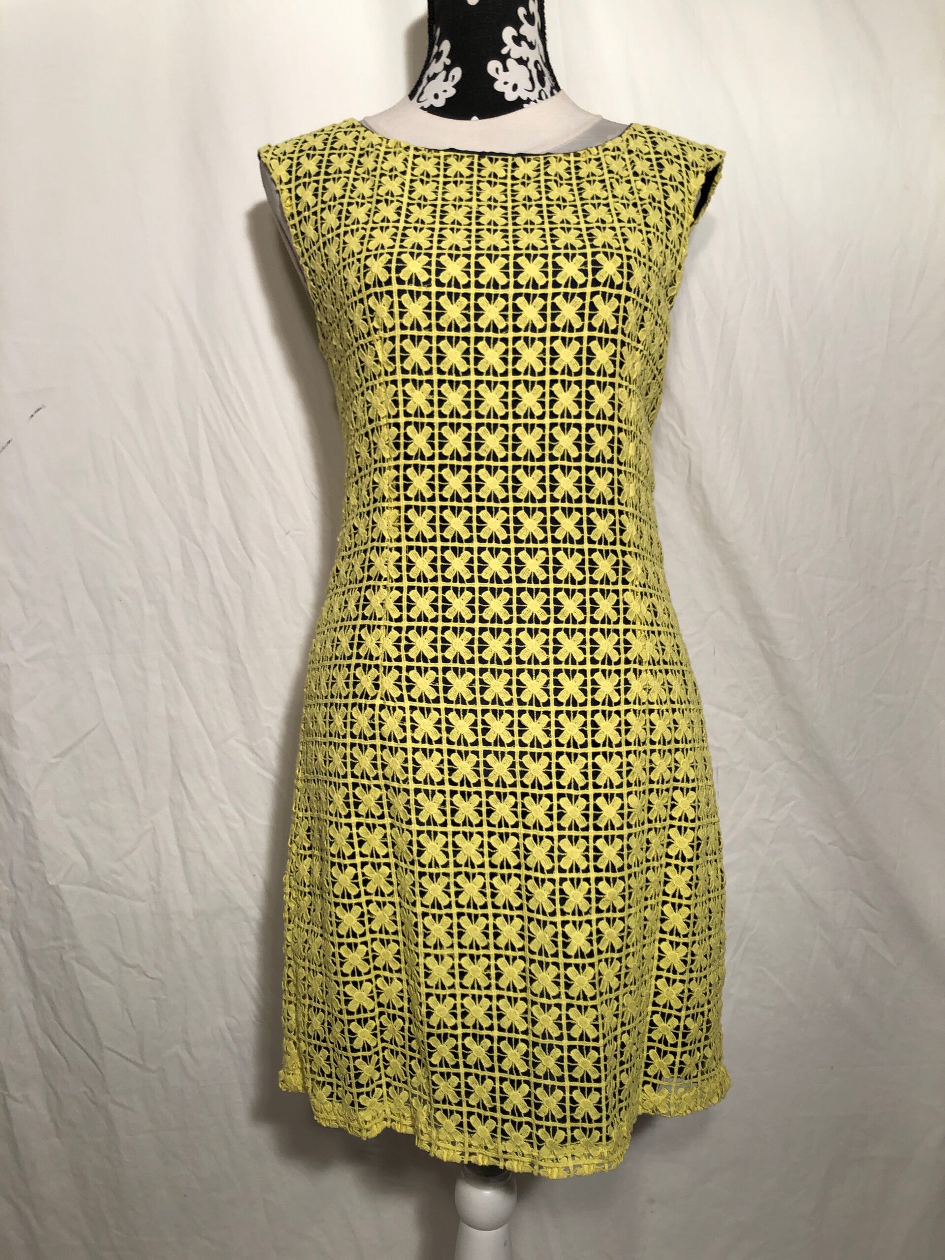 Yumi gele kant jurk met donkerblauwe voering maat 40