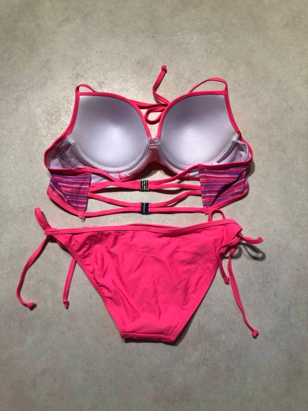 verstelbaar broekje en nekbandjes middels strikjes, dubble sluiting op de top