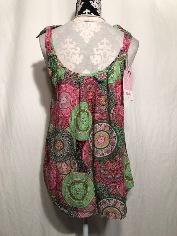Muki Made in Italy roze/groen print zomer tuniek met strikjes op de schouders maat M