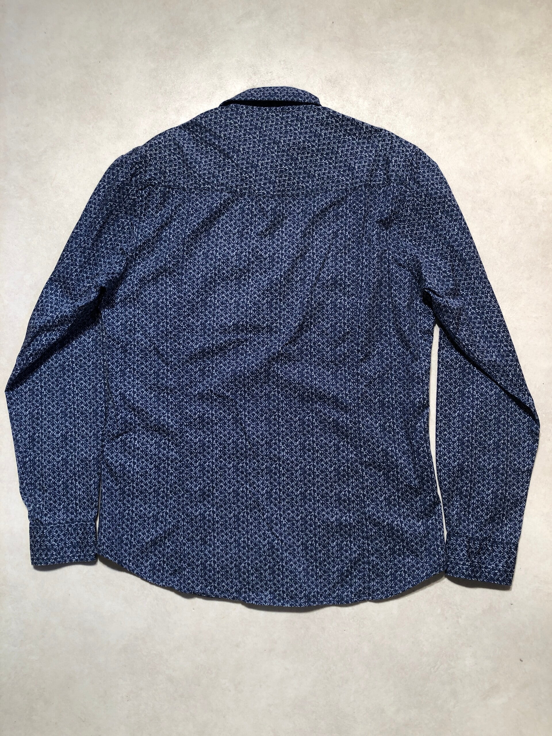 We blauw/wit print overhemd met druknoop sluiting maat L