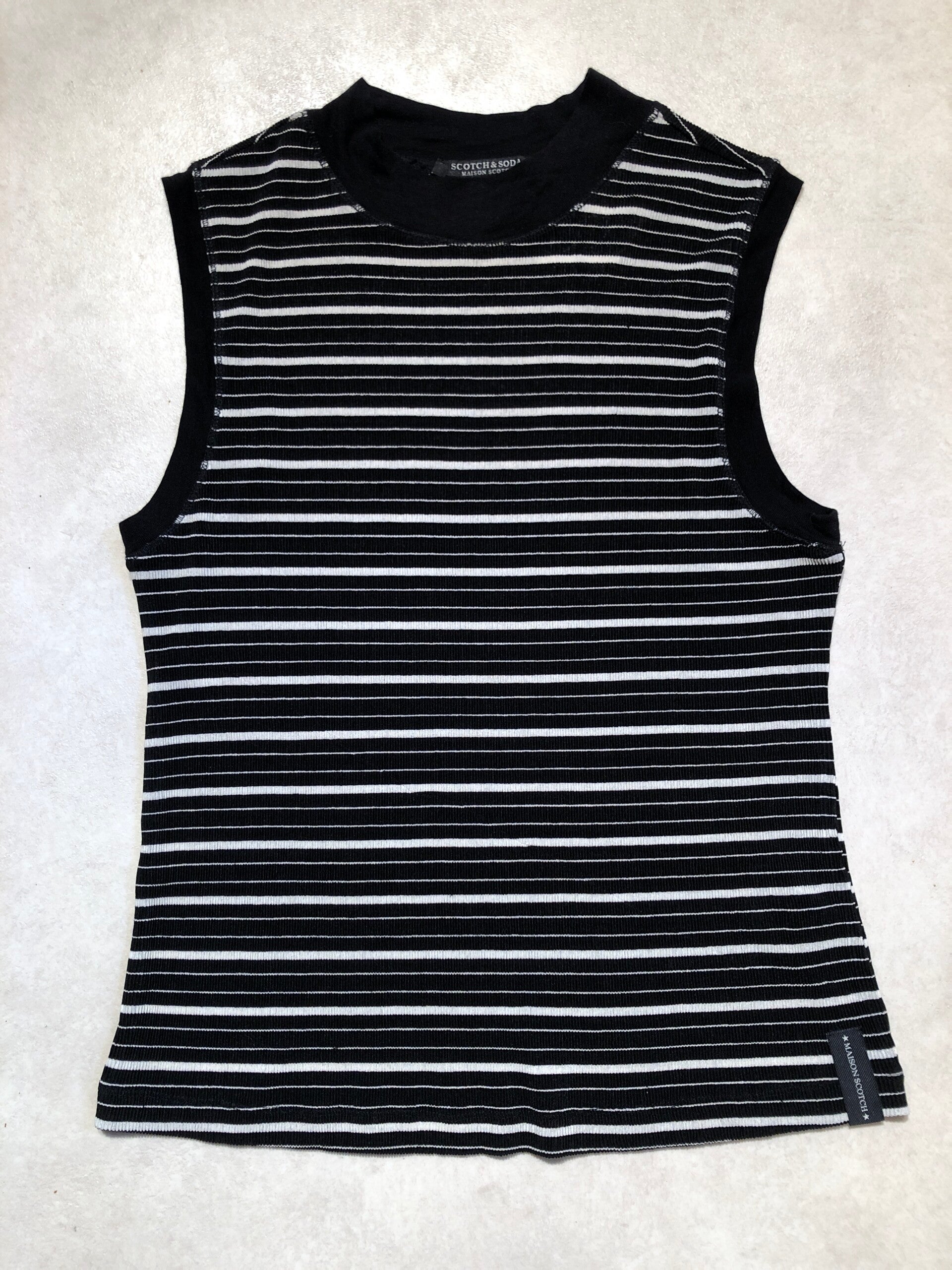 Scotch & Soda zwart/wit gestreepte tanktop afgewerkt met zwarte biesjes maat M