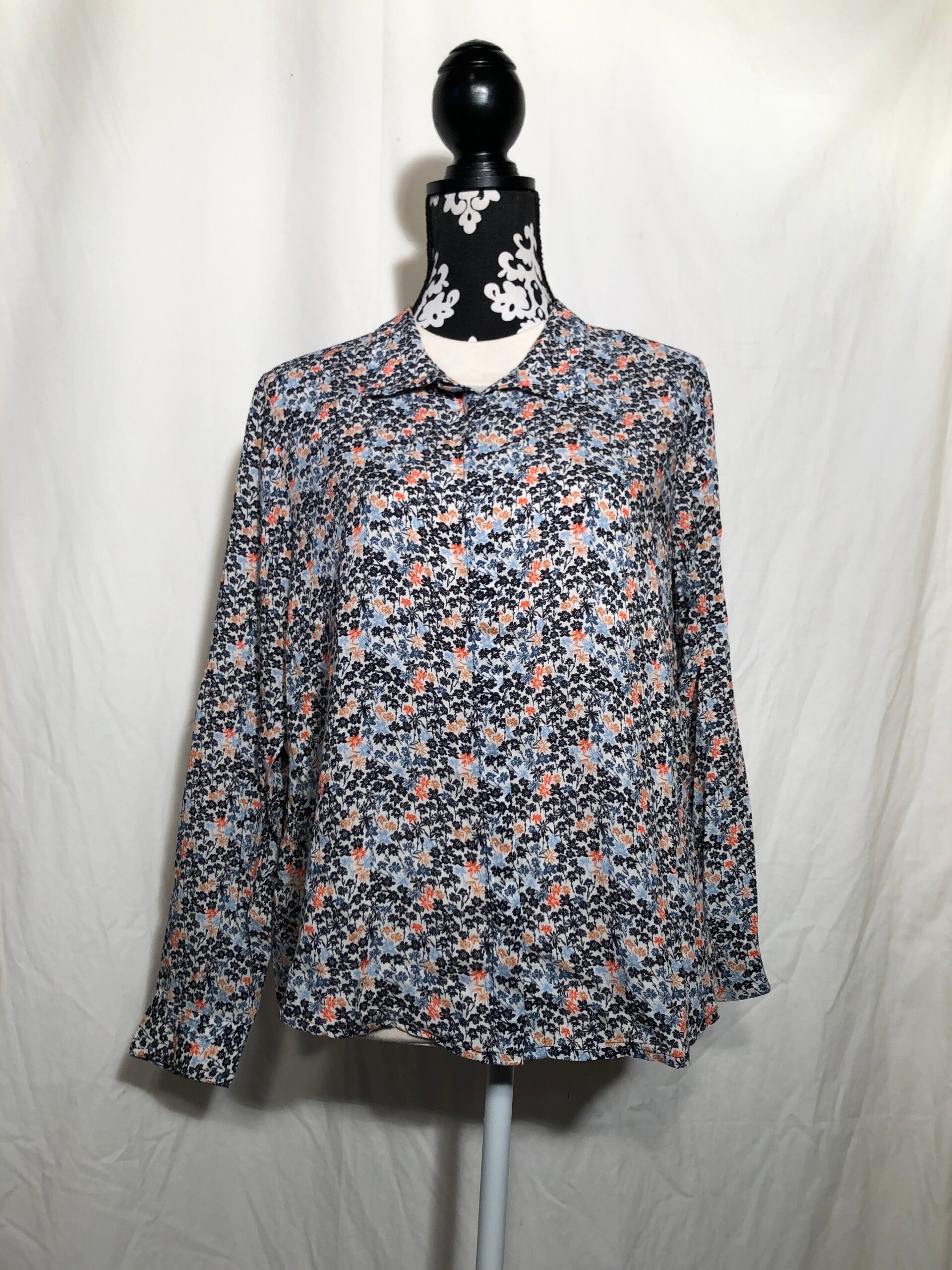 Nude atelier gebloemde blouse met blinde knoopsluiting en knoopje op de nek maat 40