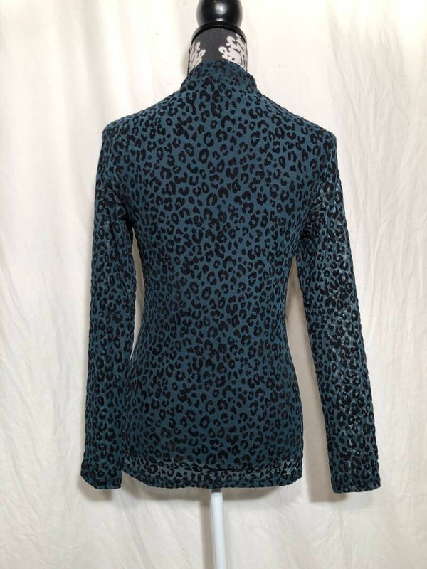 Costes donkergroen/zwart dubbellaags luipaardprint longsleeve met doorschijnende mouwen maat M