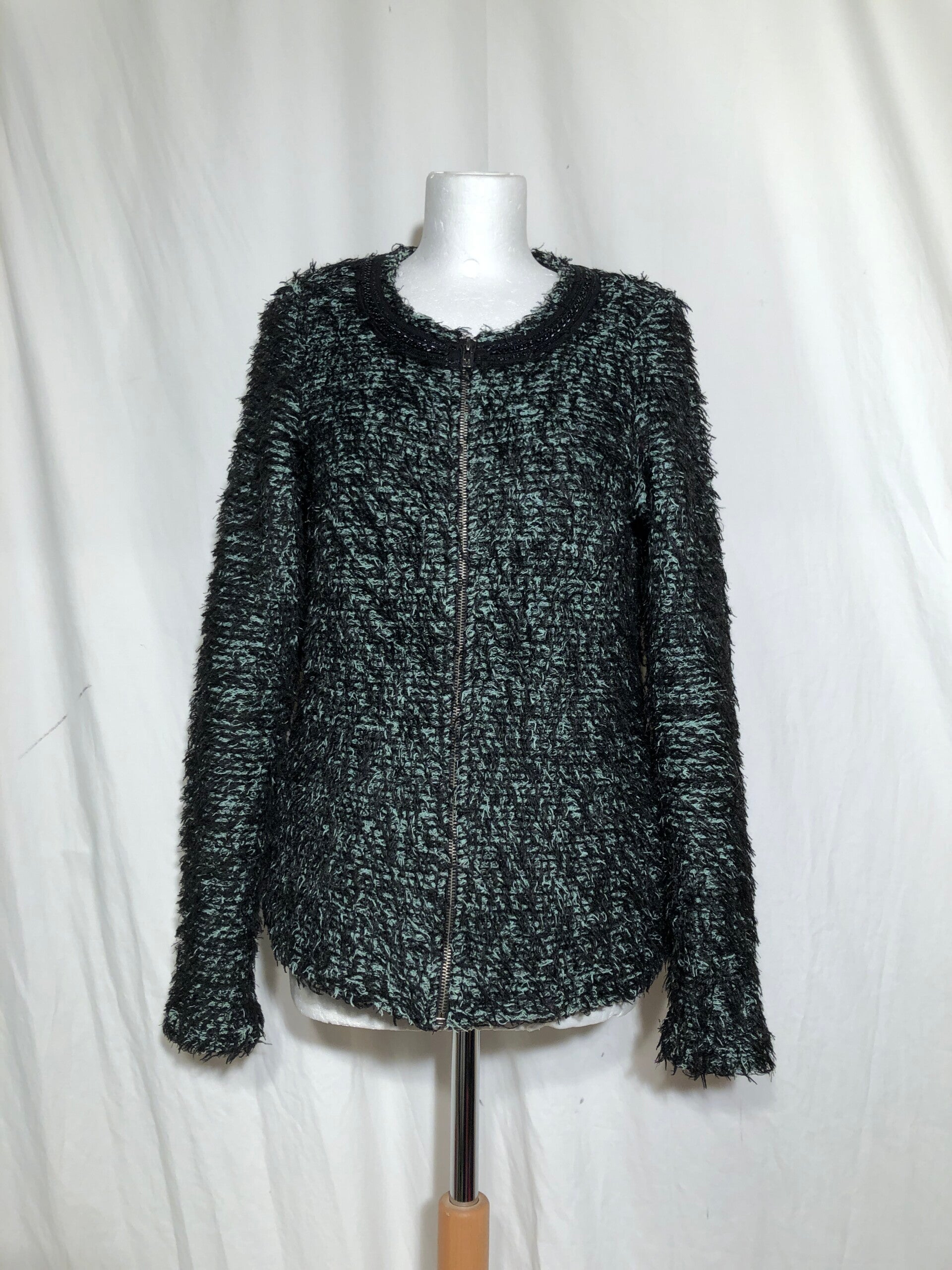 Maison Scotch zwart/groen fluffy jasje met kettingbiesje op de hals maat M