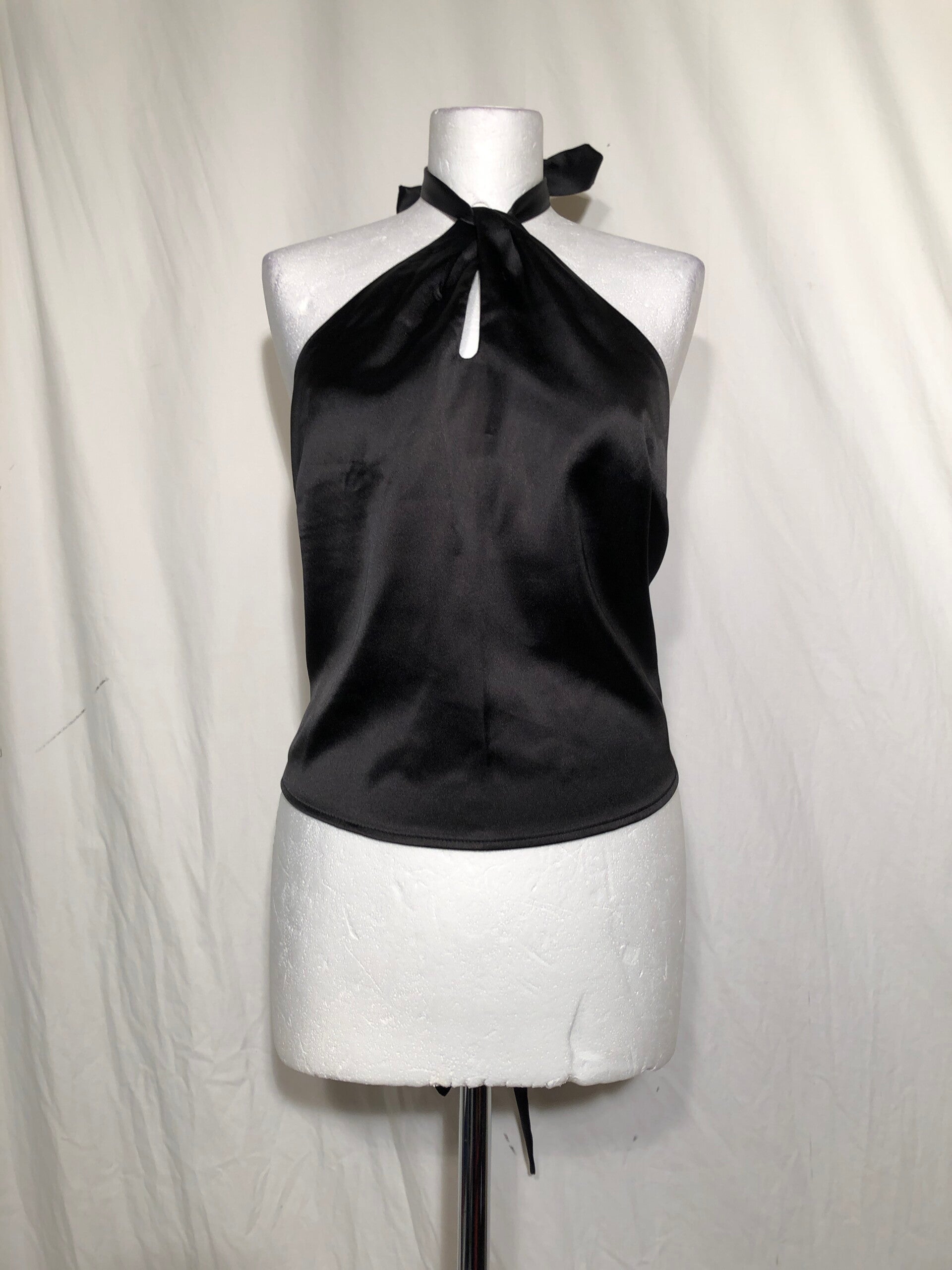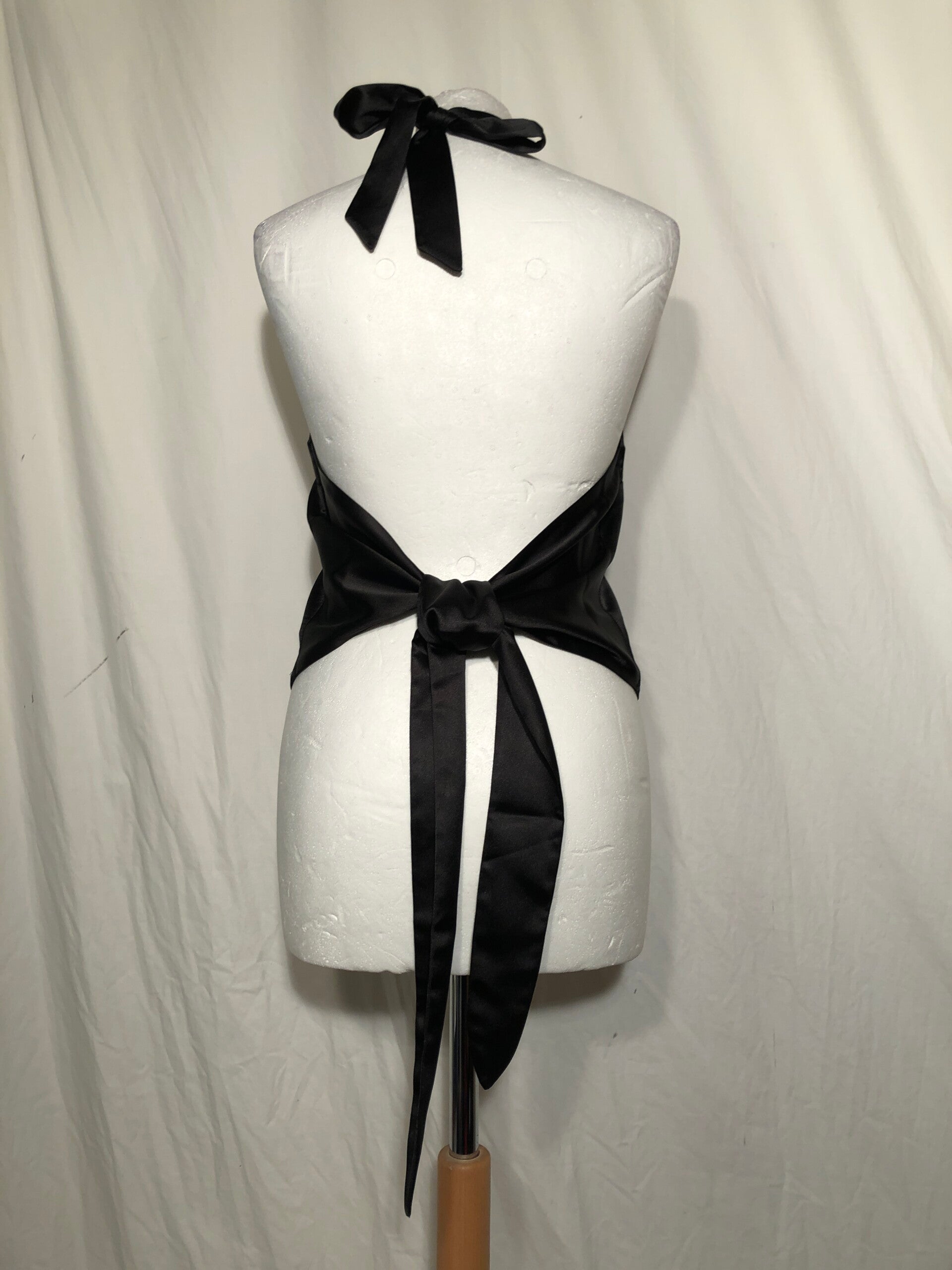 Ginatricot zwart halter gala top met strik op de hals en sluit met strik op de rug maat L