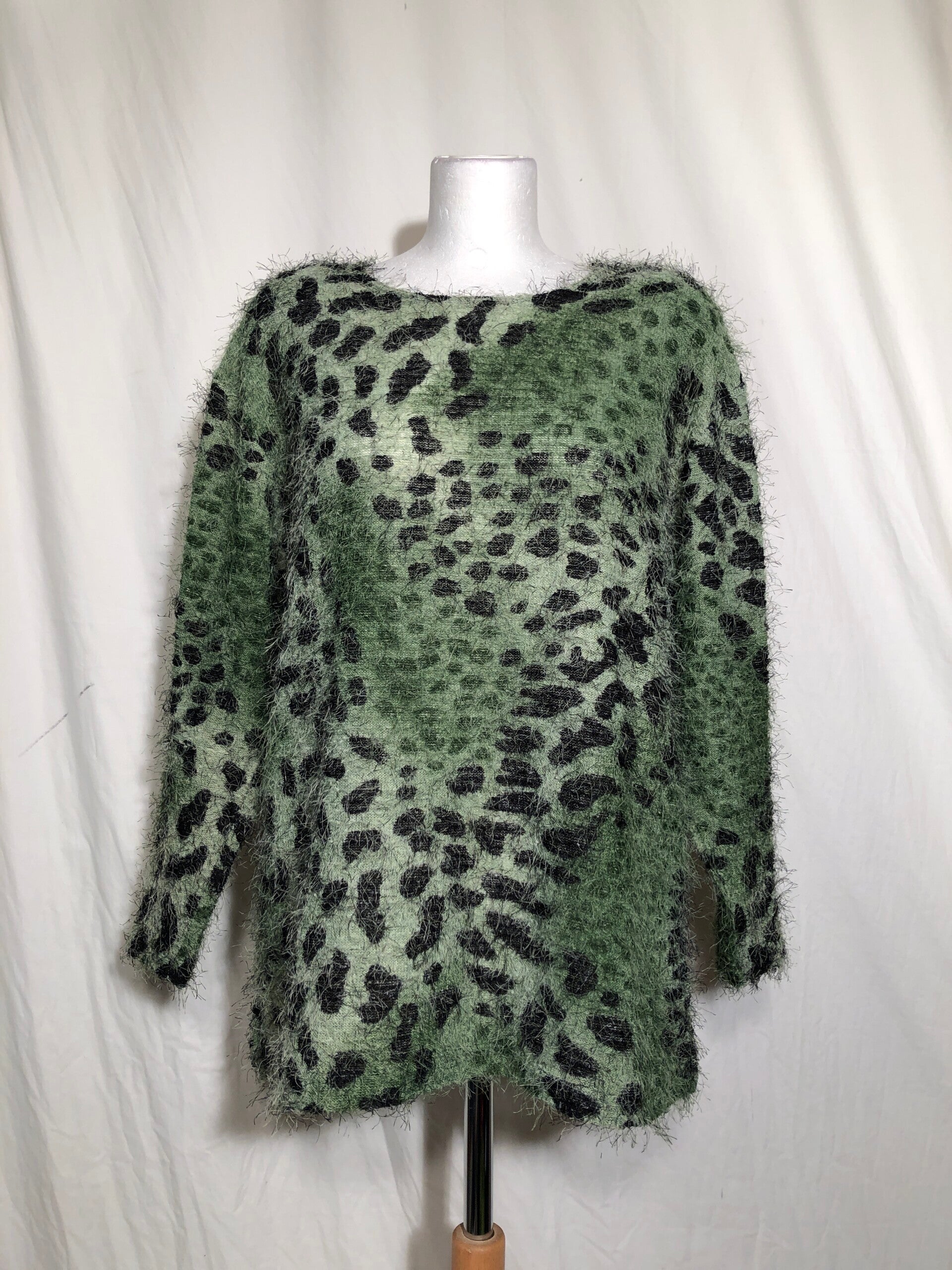 BellenSurprise groen/zwart fluffy trui met schoudervullingen maat 44/46