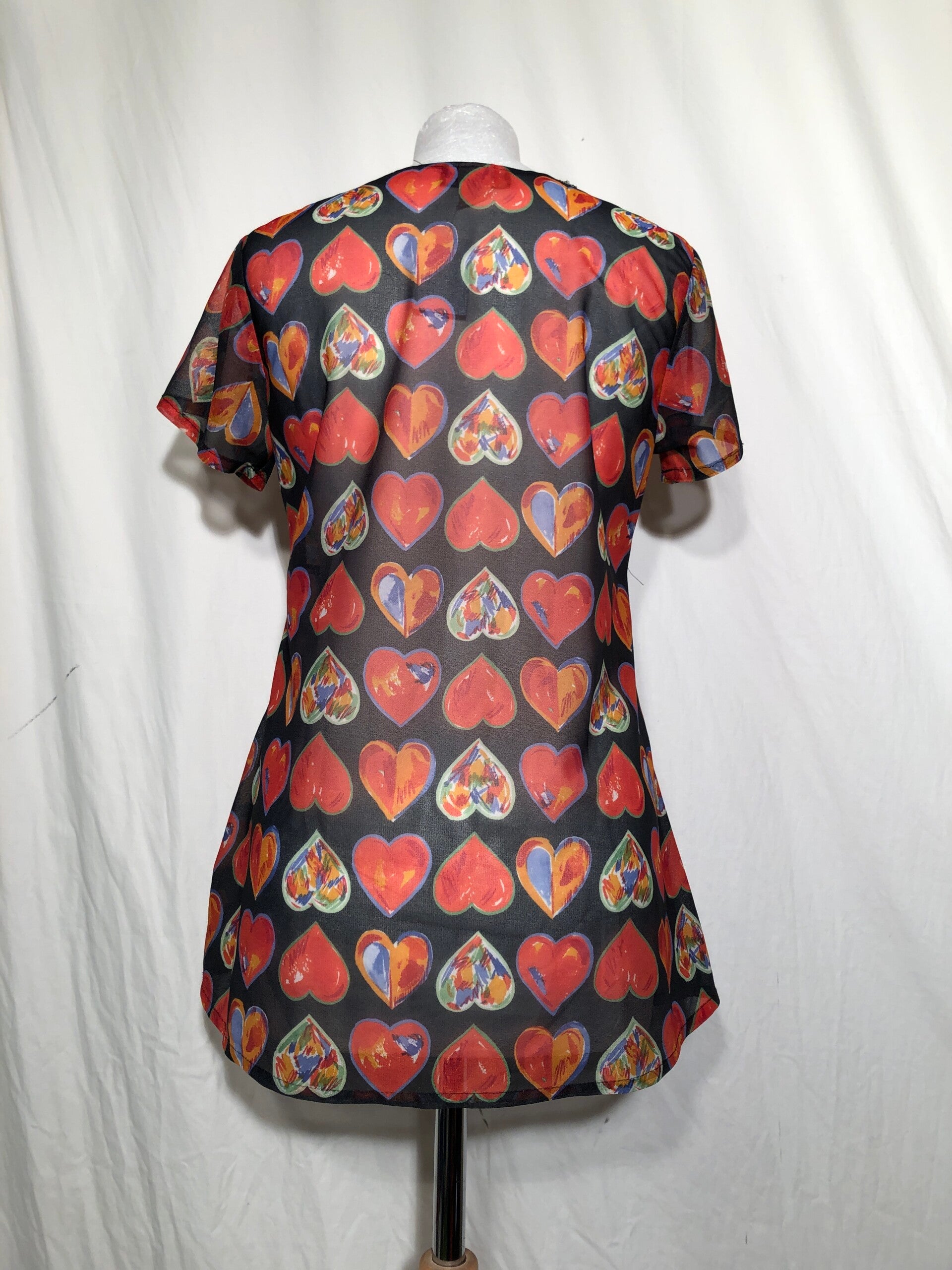 Boy ❤️ Boy! Doorschijnende top met hartjes en split op de voorzijde maat M
