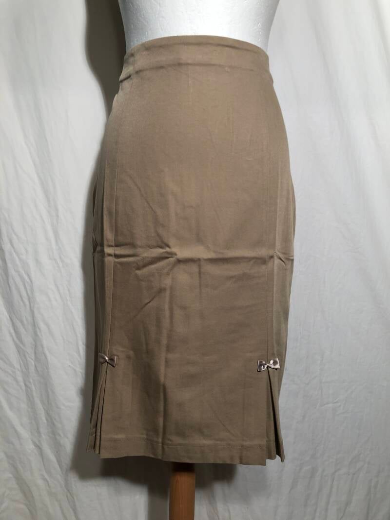 Dancing days by Banned lichtbruin retro kokerrok met strikjes op de voor- en achterzijde maat XL