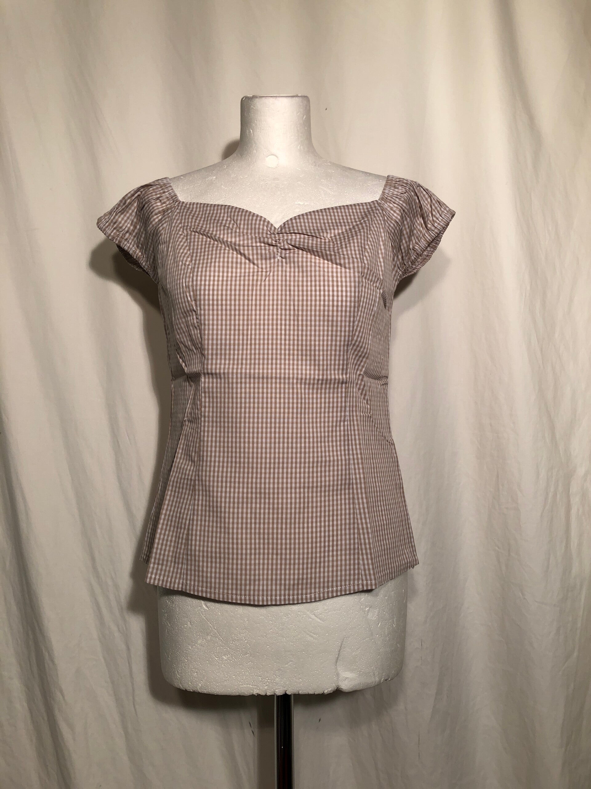 Dancing days by Banned lichtbruin retro geruite top maat M