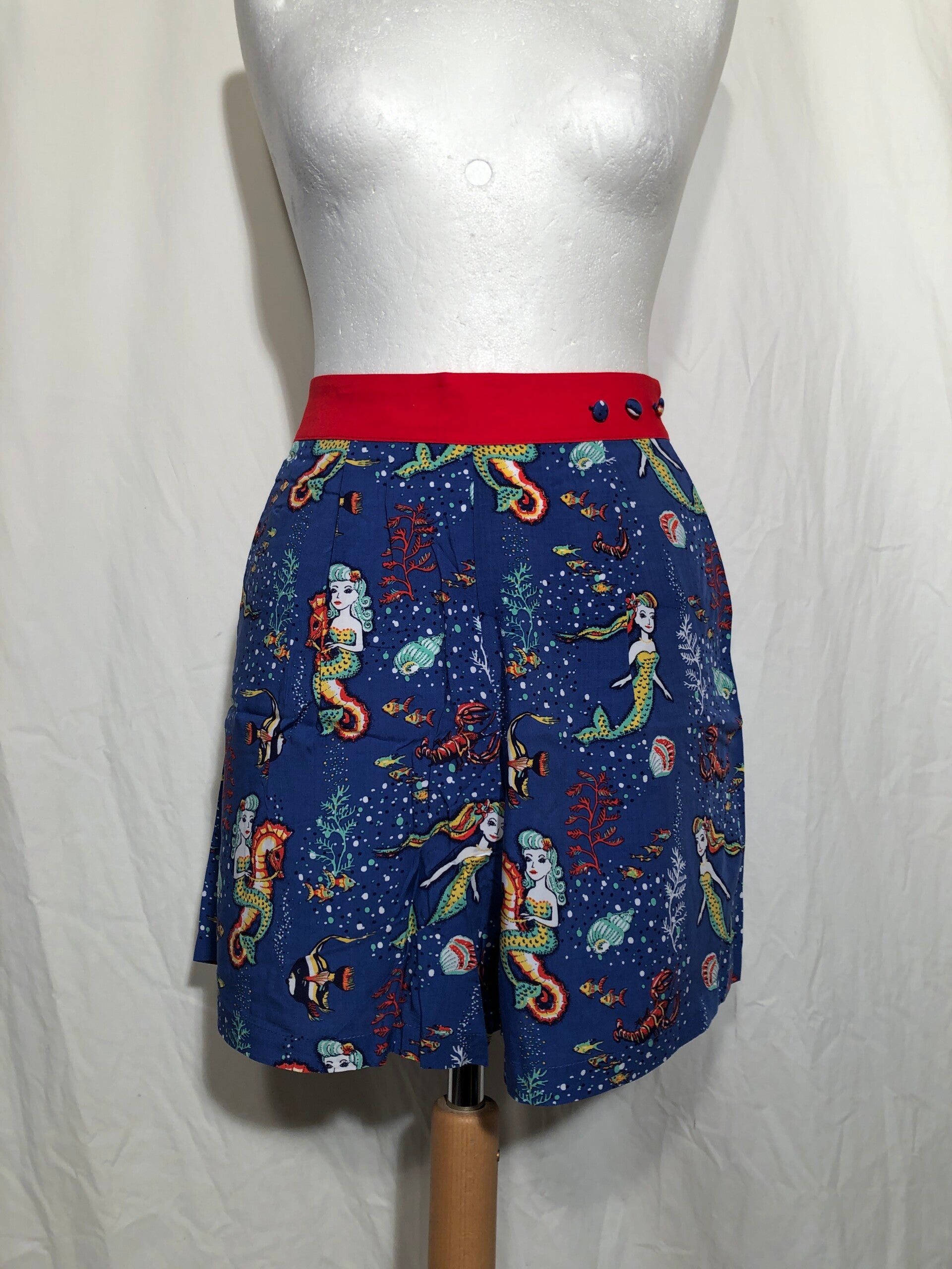 Dancing days by Banned blauw retro short met zeemeerminnen, kreeften en schelpjes maat S