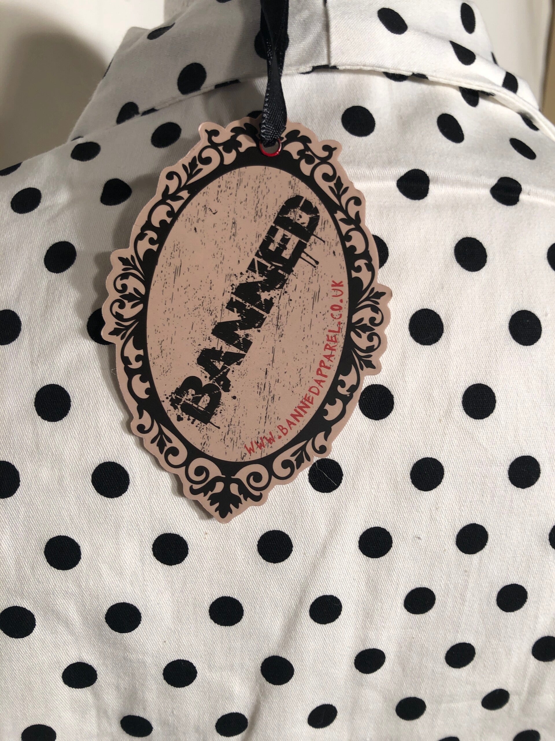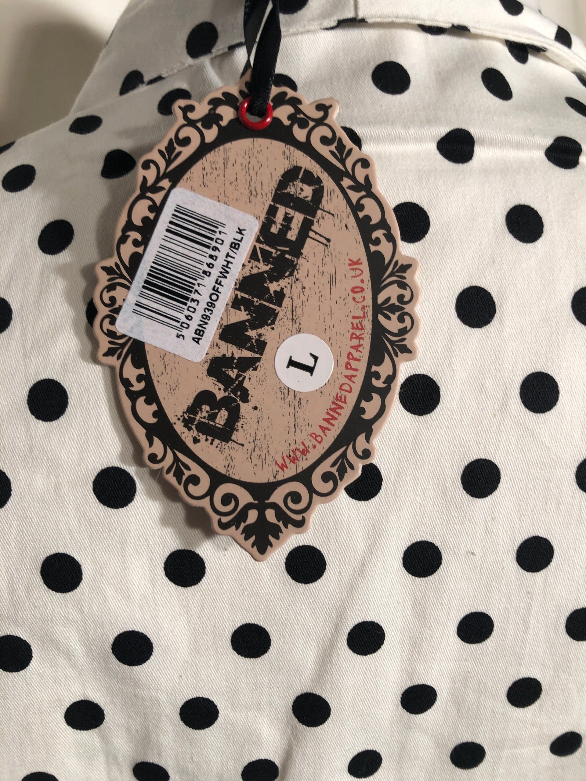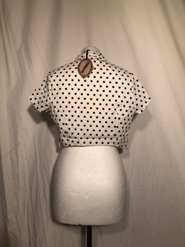 Banned wit retro bolero met zwarte polkadots maat L