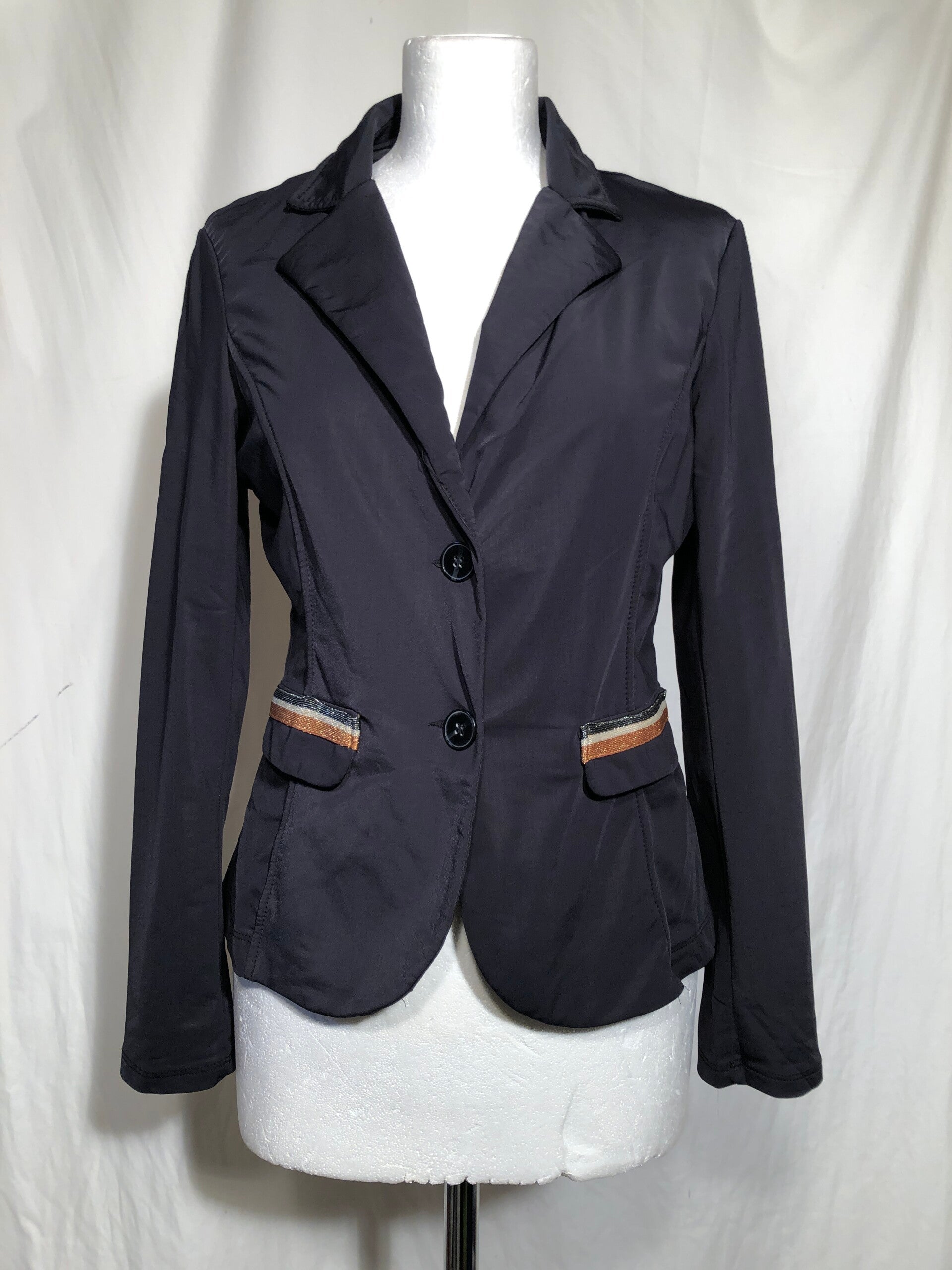 VeraJo zwart getailleerd jasje met glitterbiesjes op de sierzakjes maat M