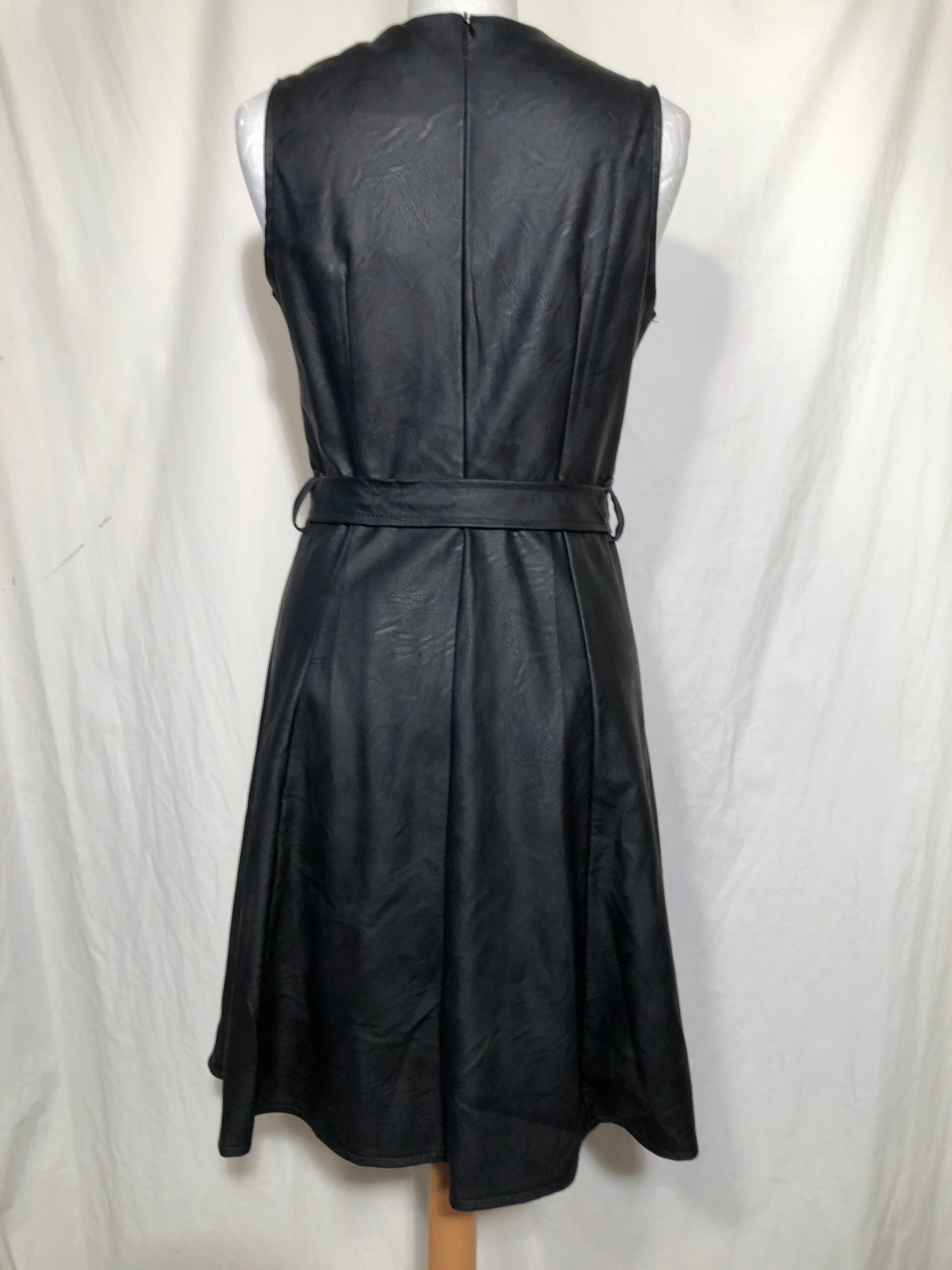 Lustyle New Collection zwart imitatie lederen jurk met strikceintuur maat M