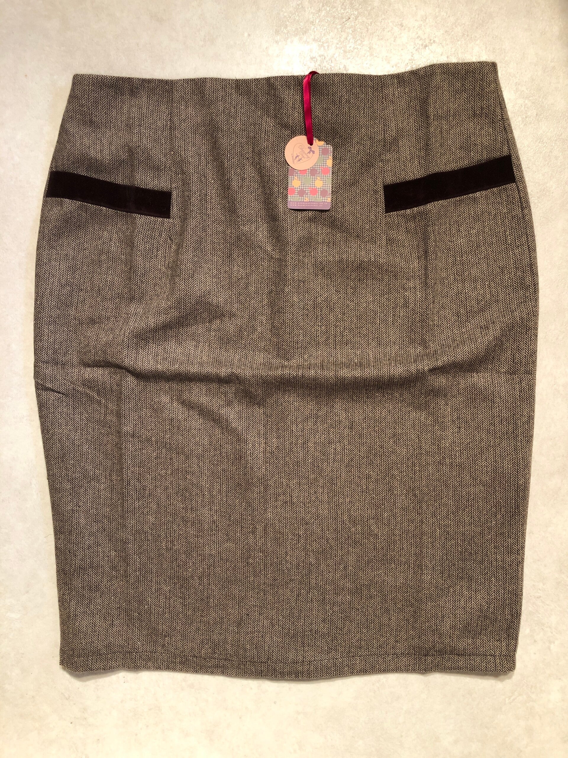 Dancing days by Banned bruin retro rok met zakjes op de voorzijde afgewerkt met bruin velours en split op de achterzijde maat