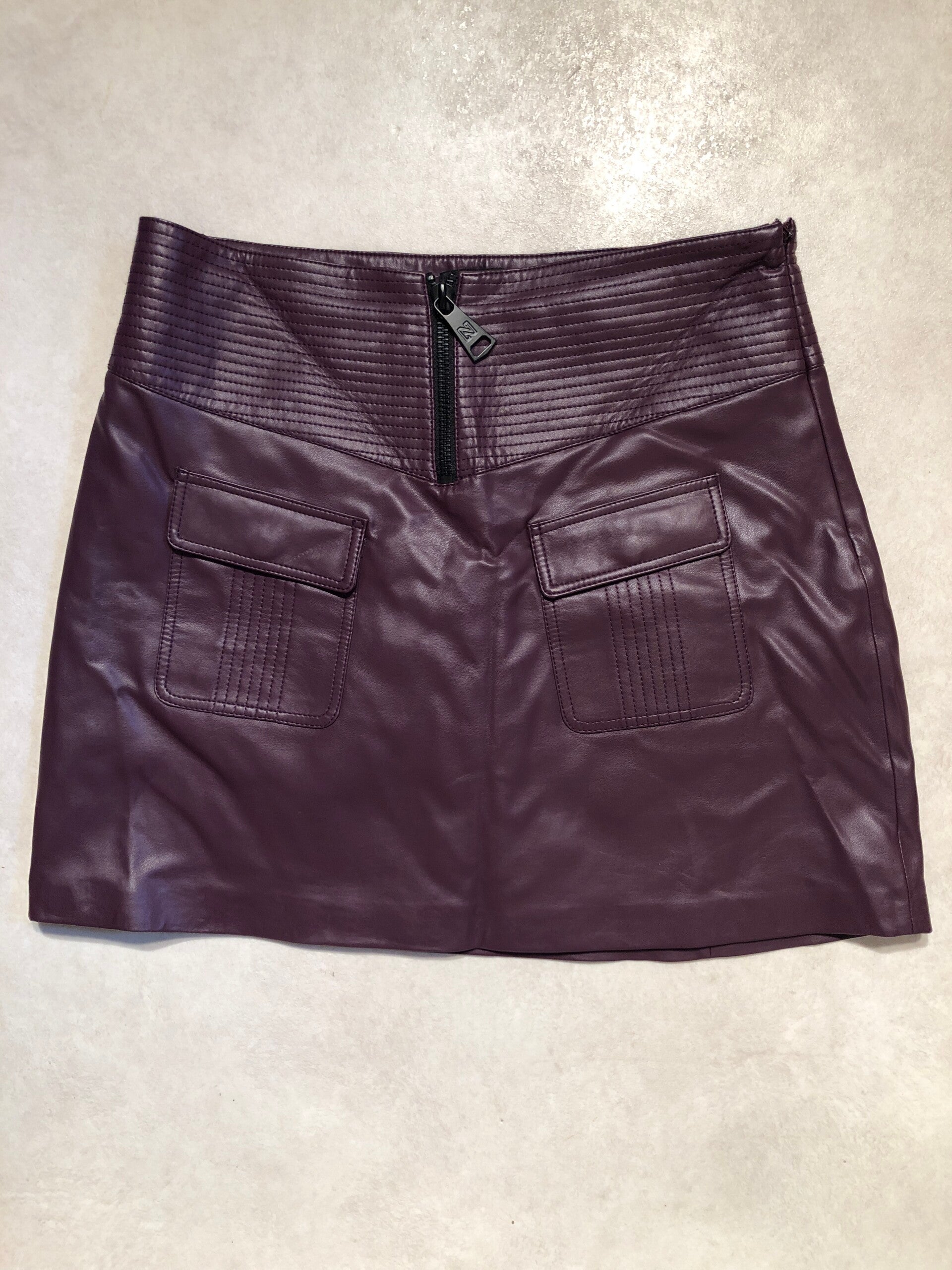 Nikkie paarse imitatie lederen rok met rits en zakjes op de voorkant en rits op de zij maat 42