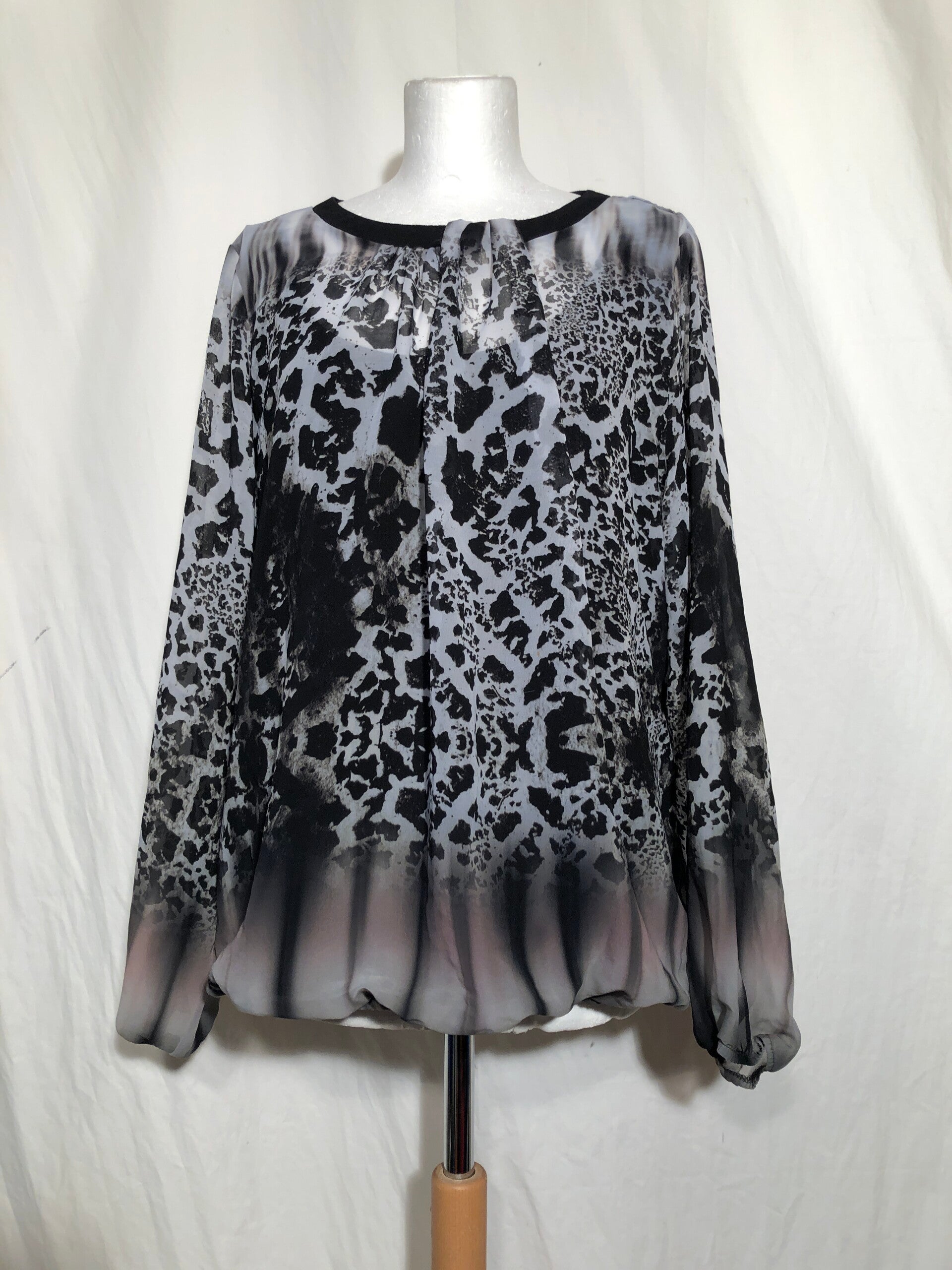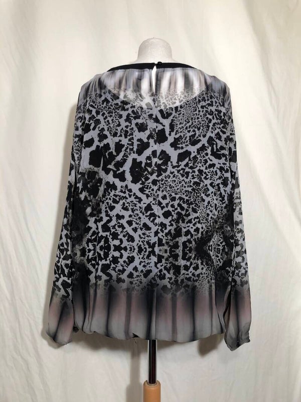 NED zwart/grijs print doorschijnend tuniek met vaste zwarte ondertop maat XXL