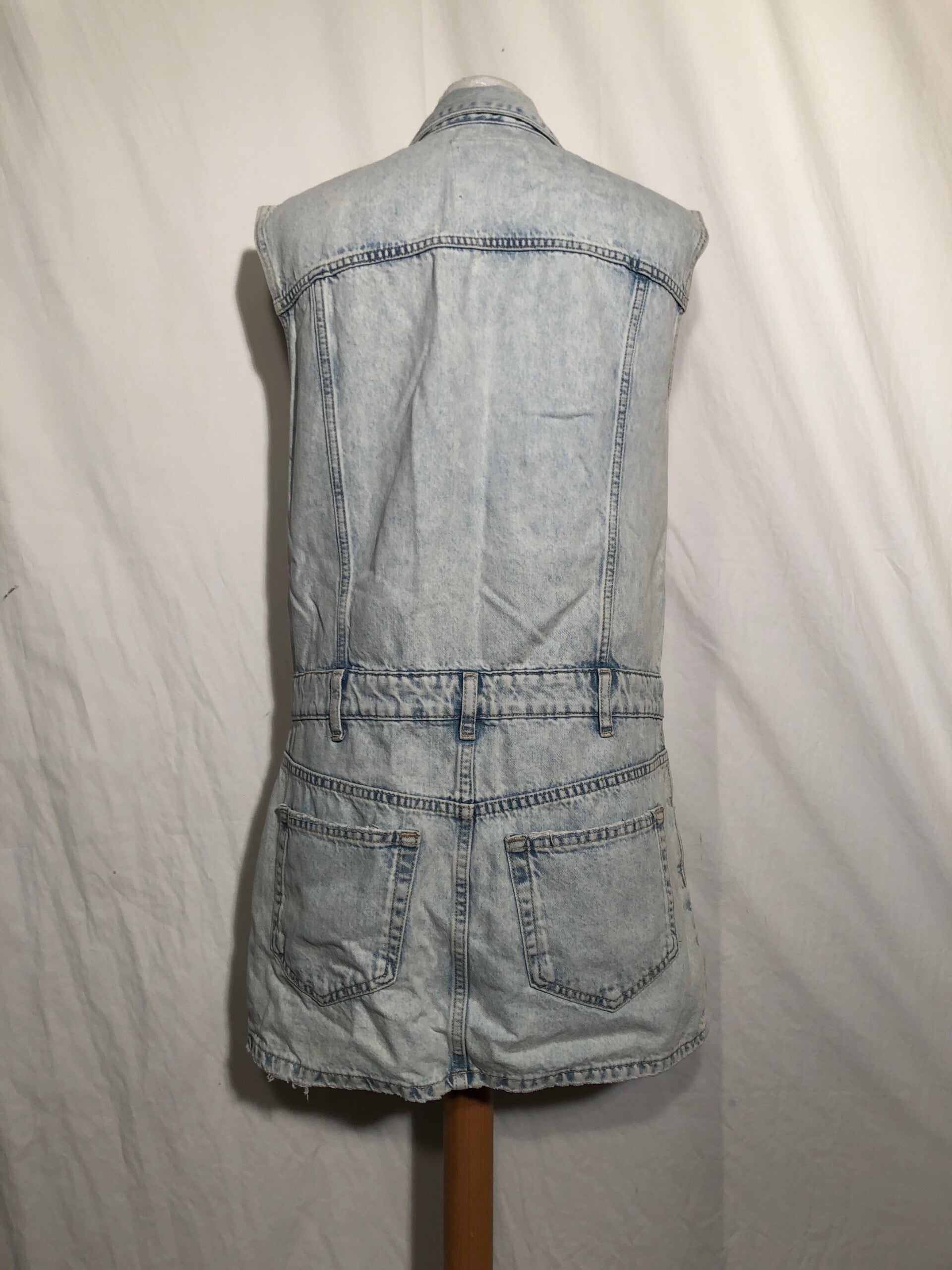 Pull & Bear denim jeans jurk met gaten en zakken wel