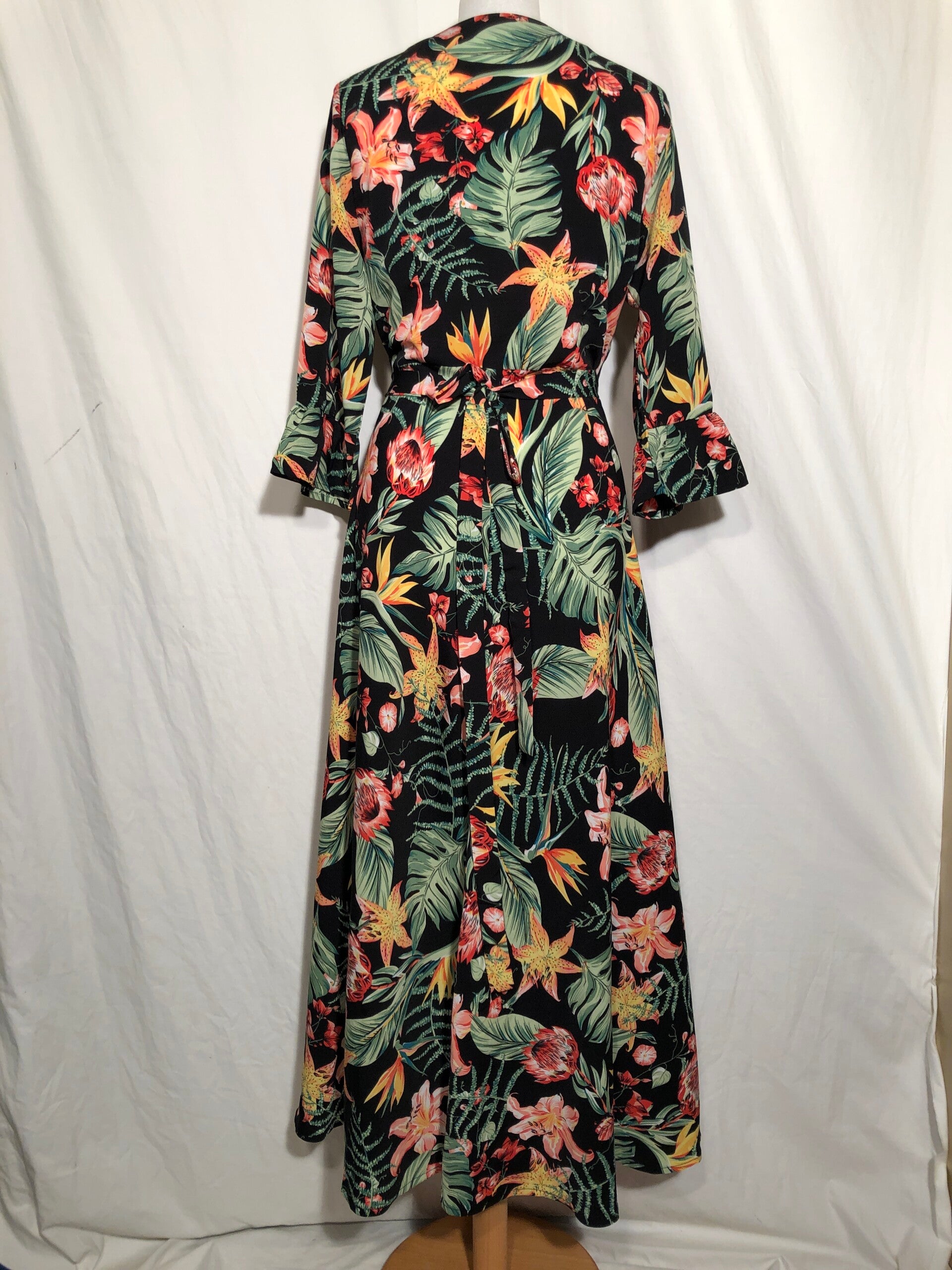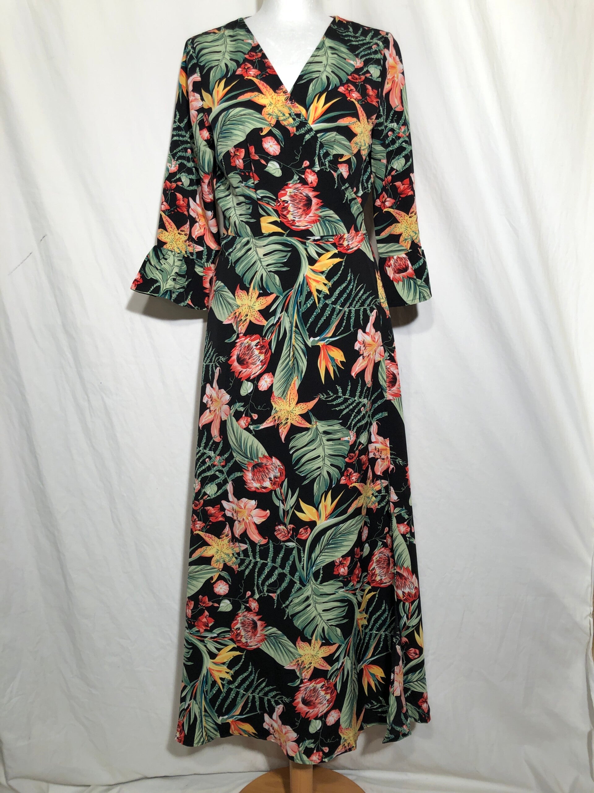 Colourful Rebel zwart gebloemde overslag jurk met driekwart mouwen maat M