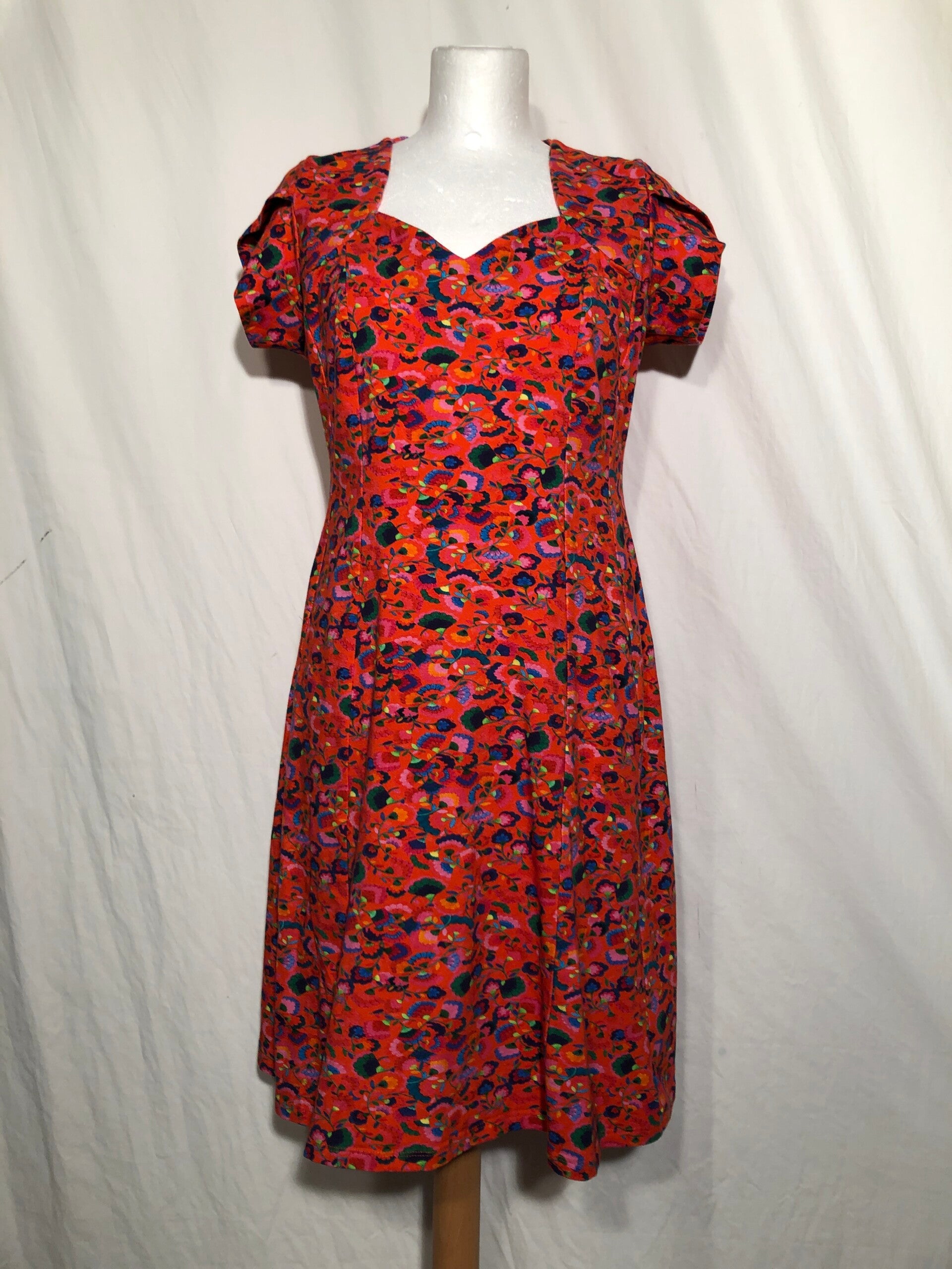 Lien & Giel oranje gebloemde jurk met overslag mouwtjes maat L