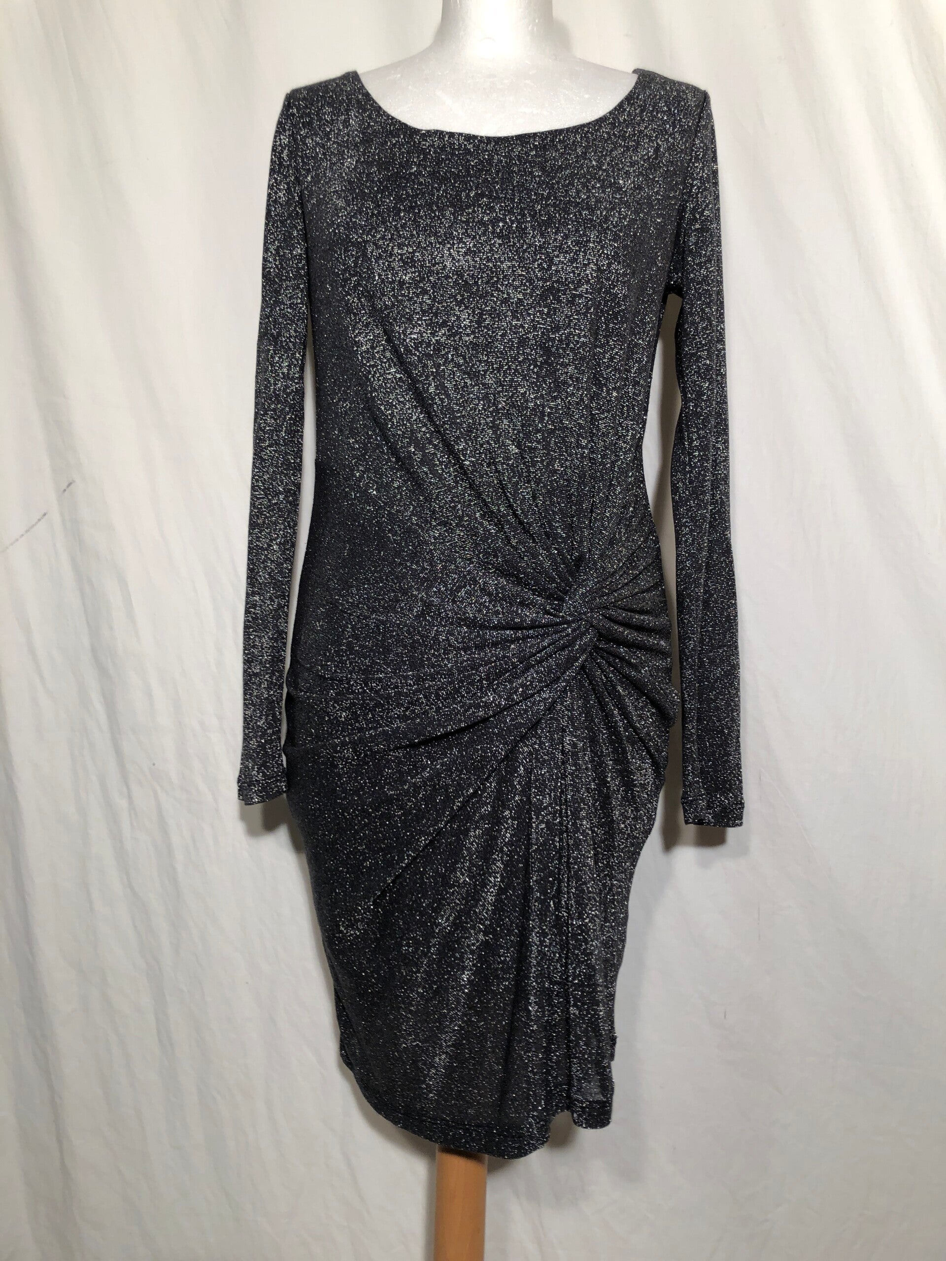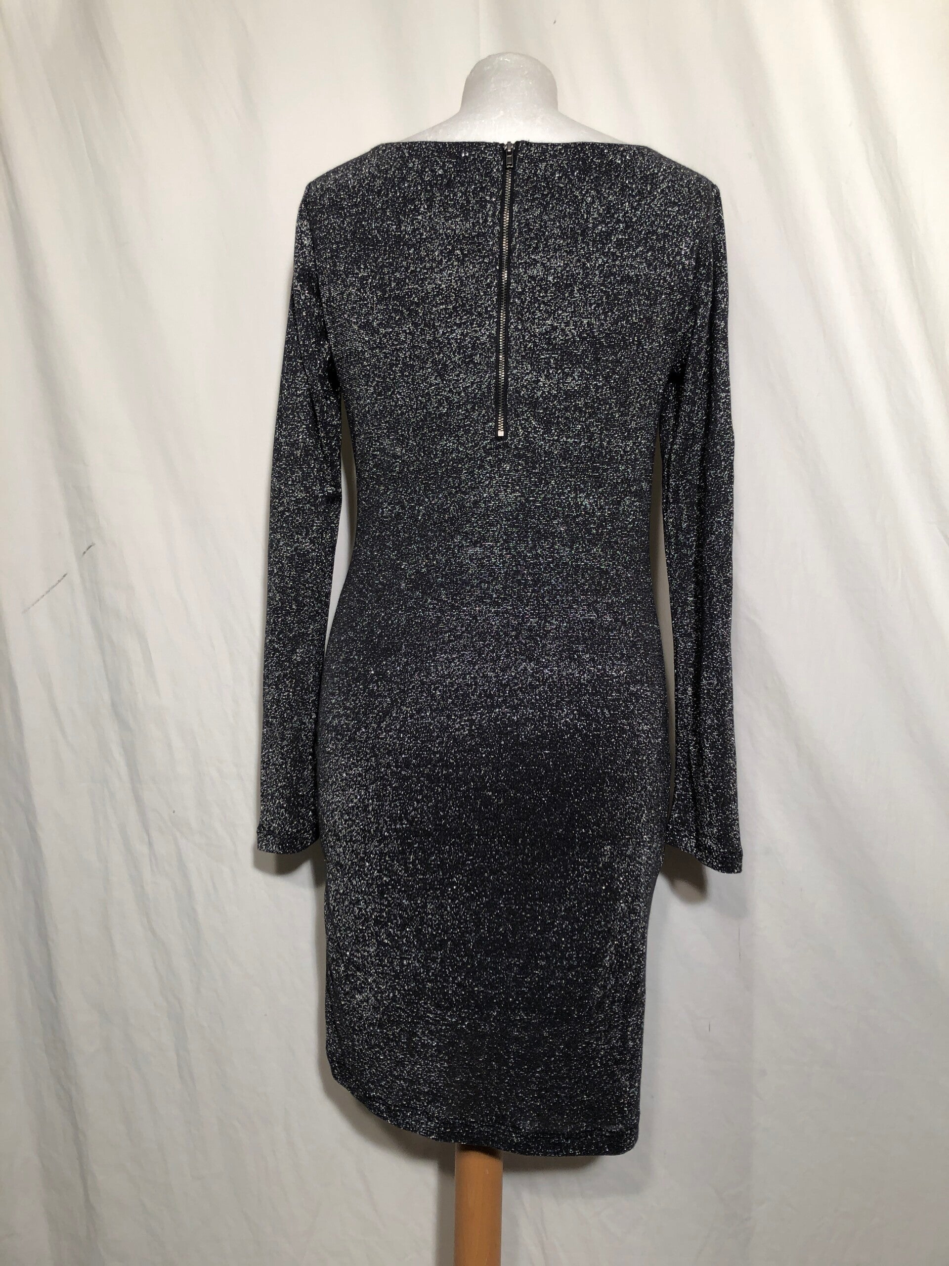 Vila zilverkleurige cocktail jurk met knoop op de zij en rits op de rug maat M