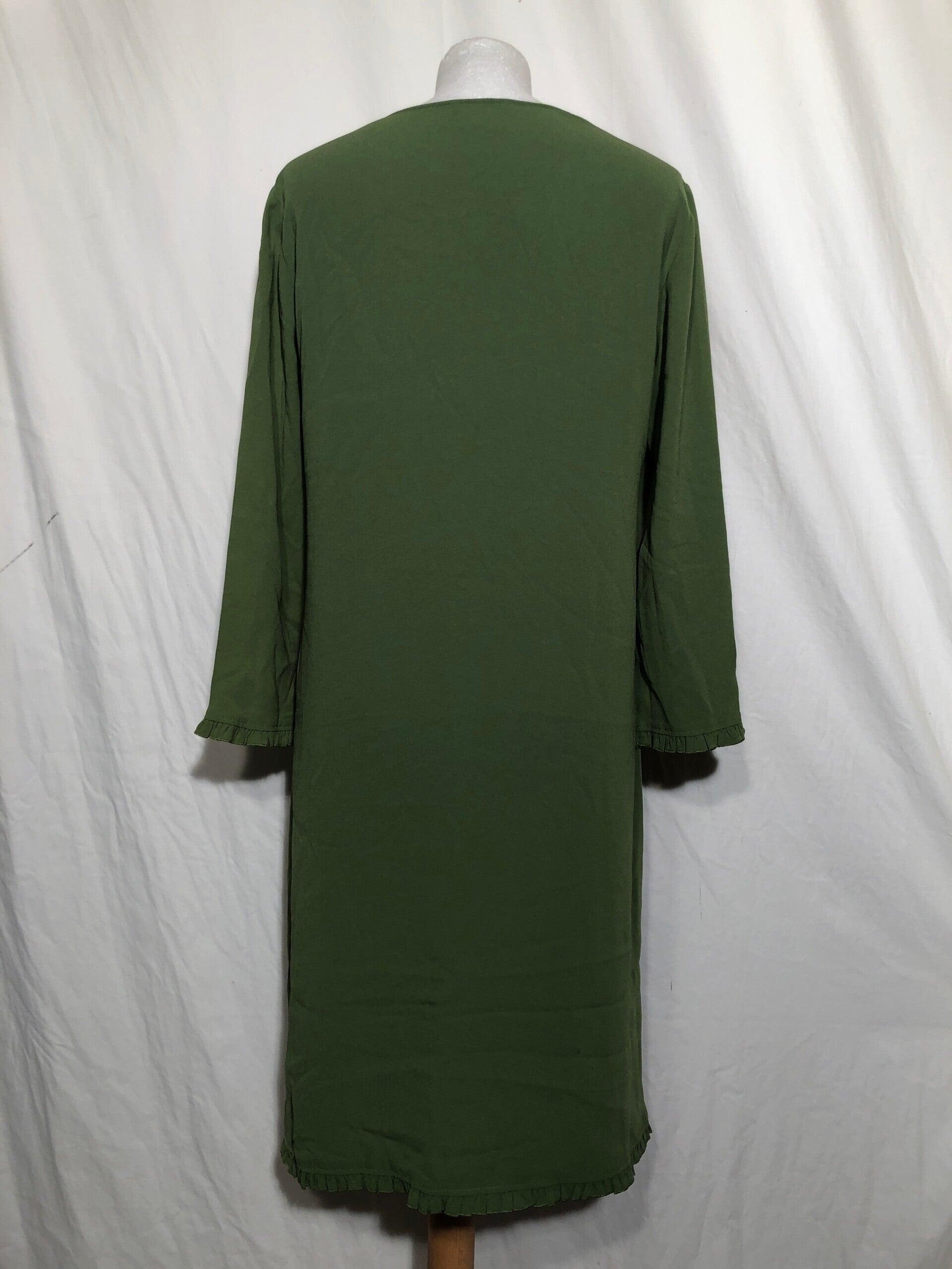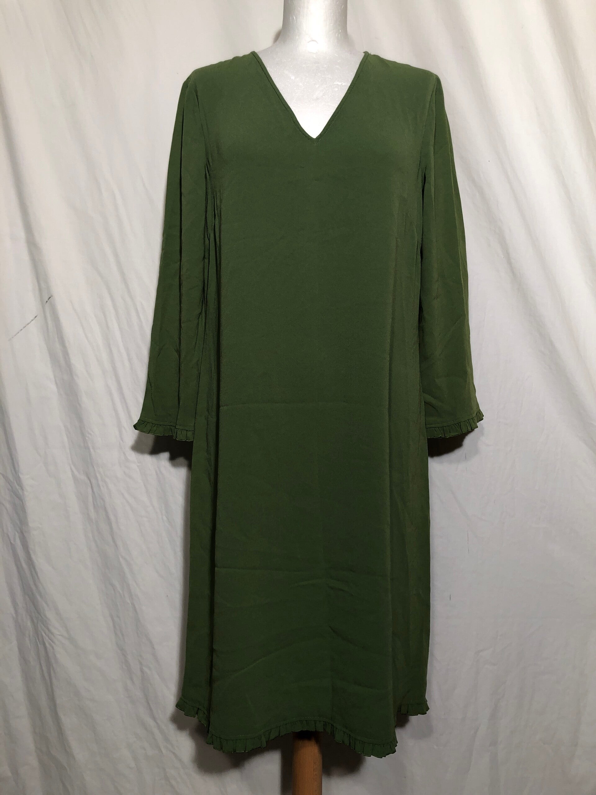 Claudia Sträter groene jurk met ruches aan de mouwen en onderkant maat 38