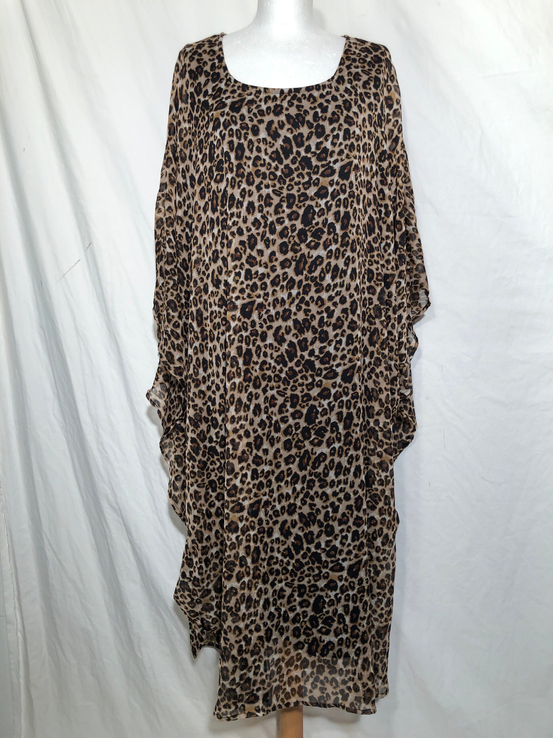 Zhenzi doorschijnende luipaard print jurk met vleermuis mouwen maat 48