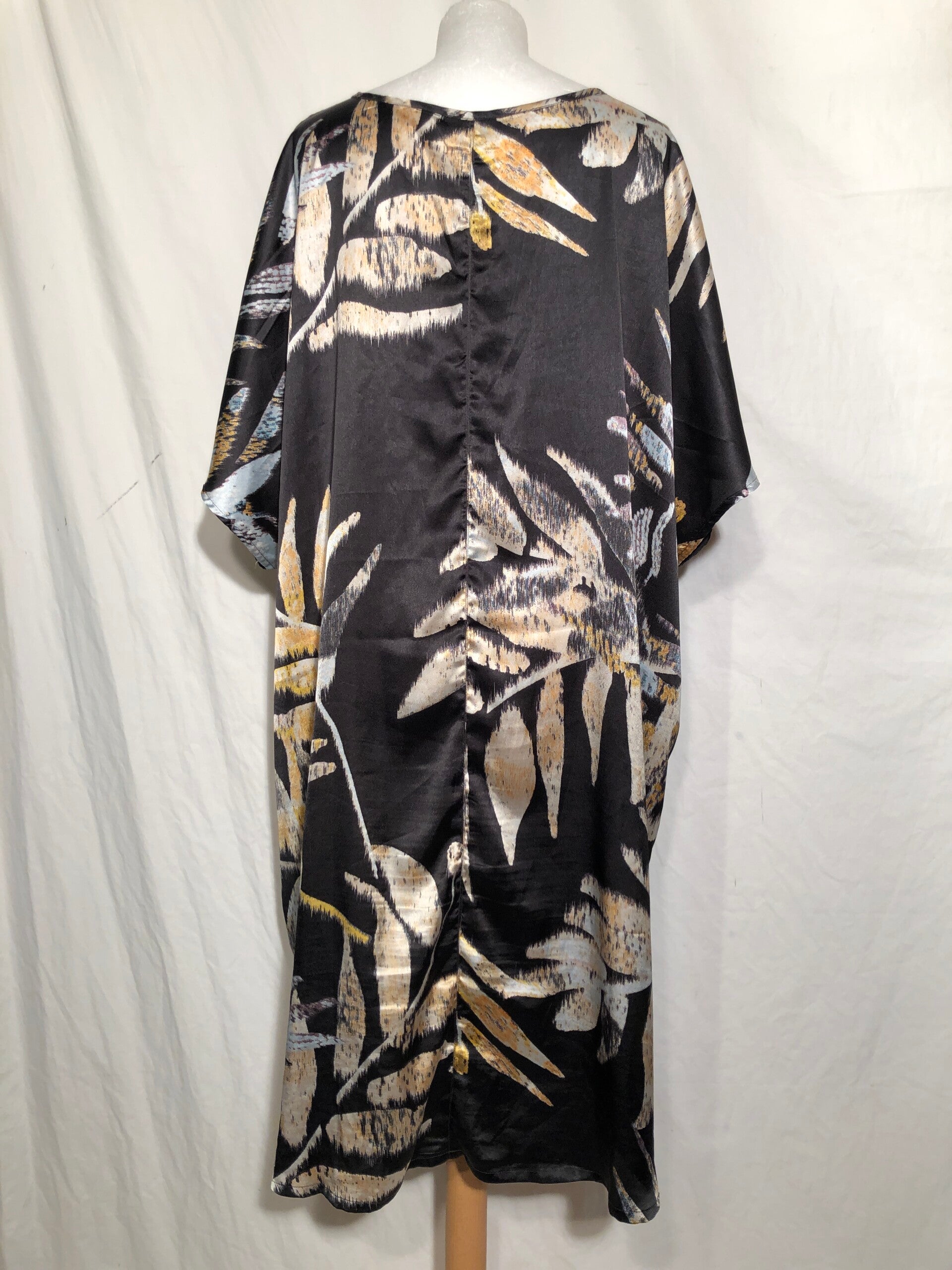 Zizii zwart glimmende jurk met print en vleermuis mouwen maat 54/56