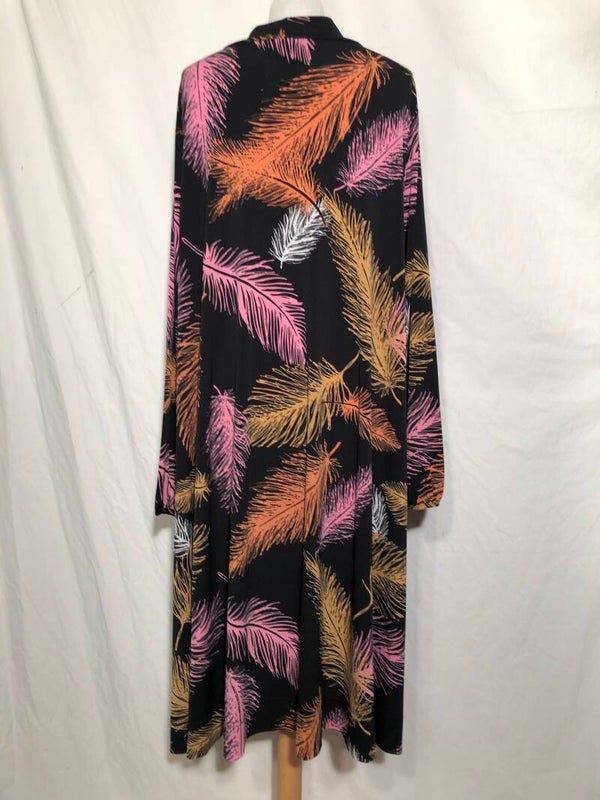Yoek zwarte jurk met oranje, roze en witte veren maat 54/56