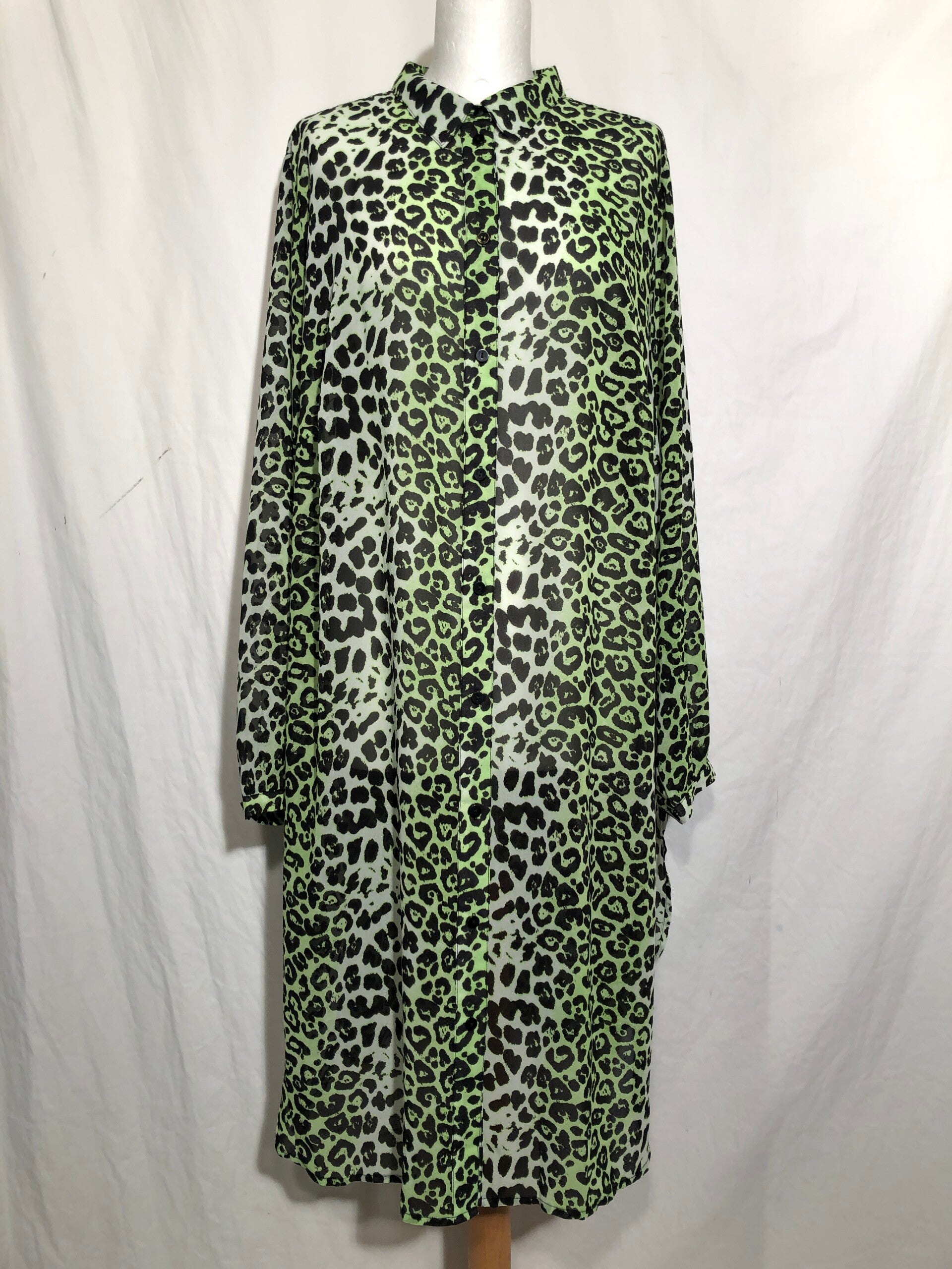Studio untold felgroen doorschijnende luipaard print jurk maat 50/52