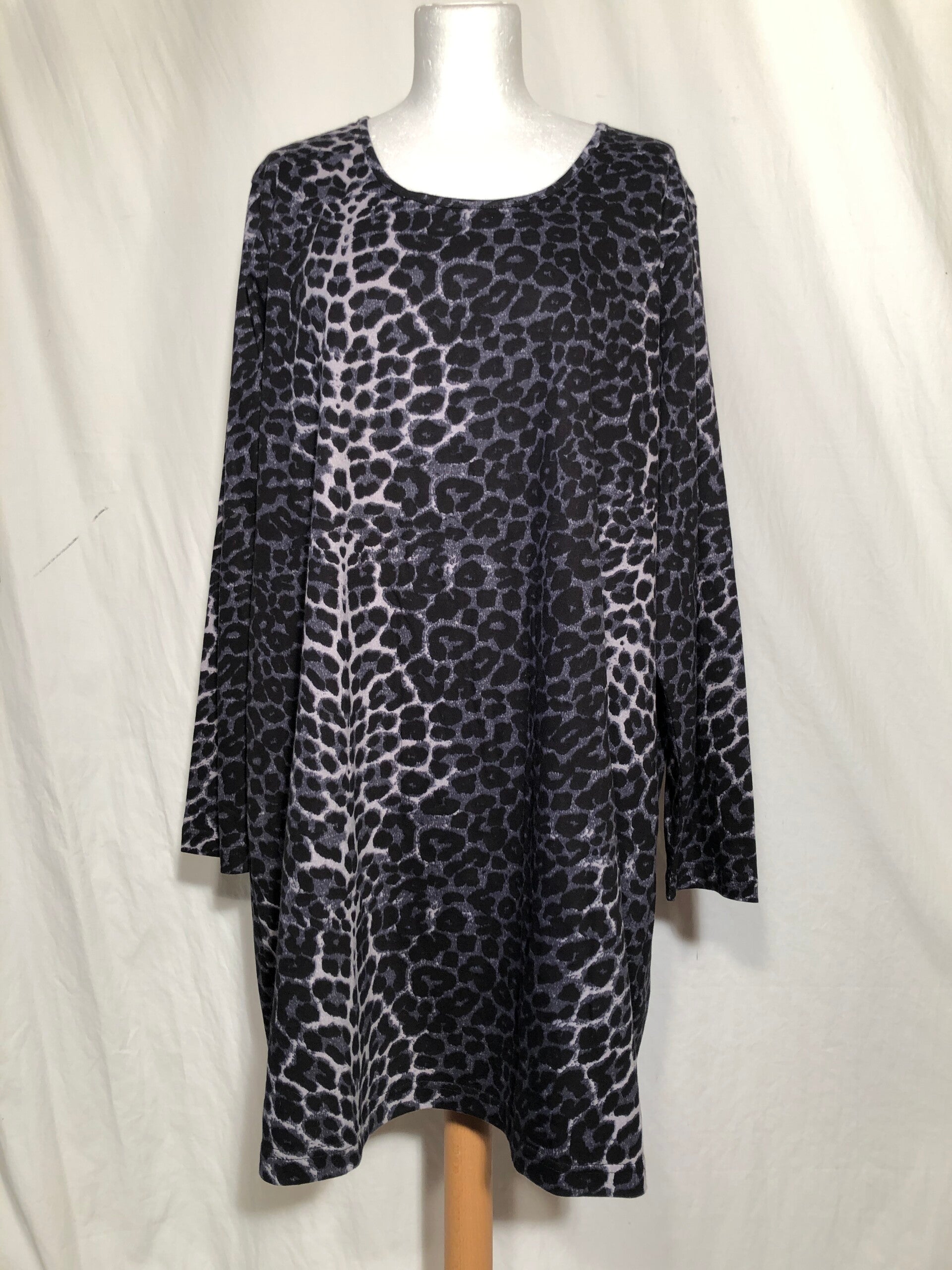 Ulla Popken grijs/blauw luipaard print longsleeve maat 50/52