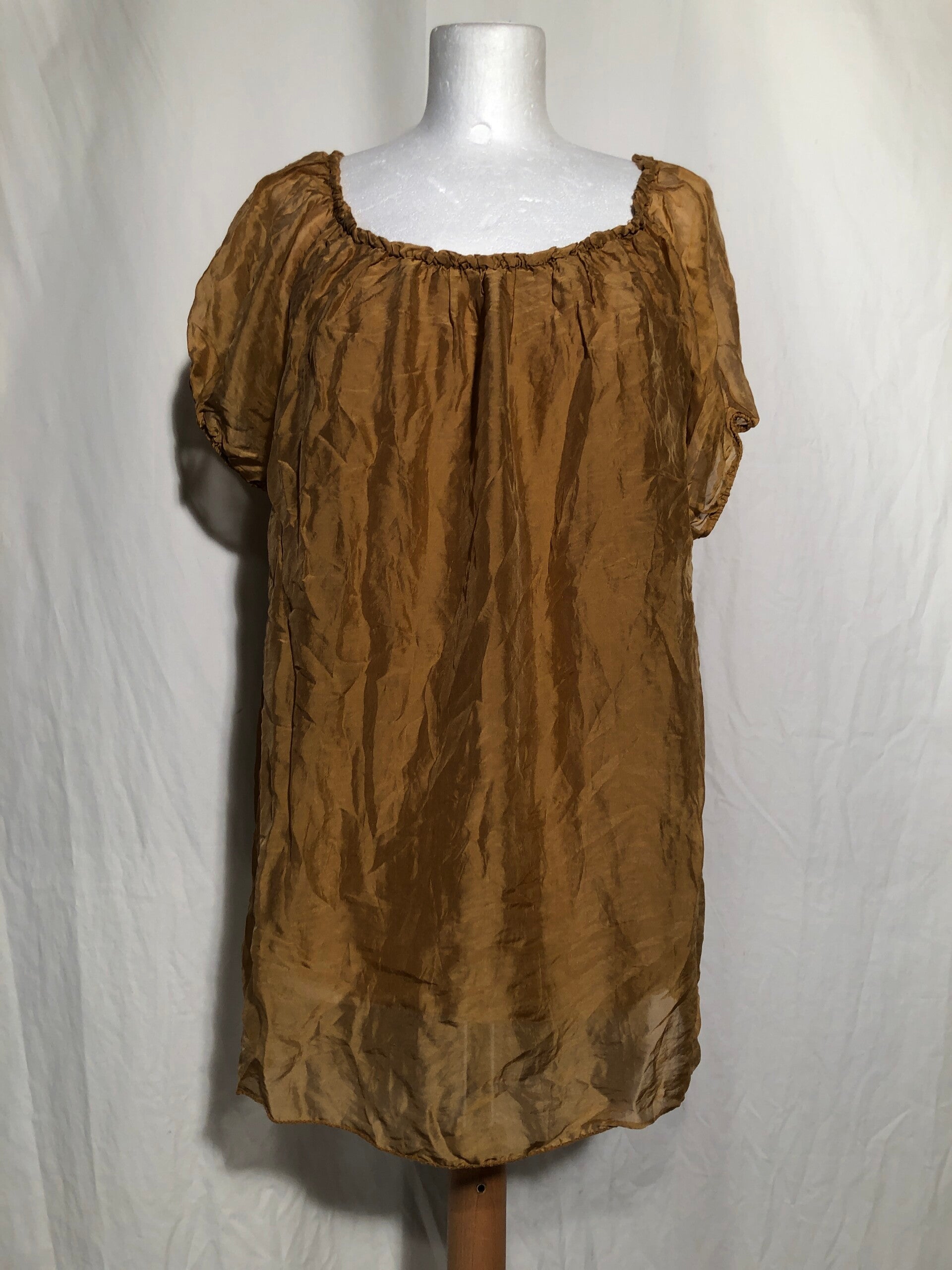 SuZa goudkleurig dubbellaags tuniek met elastiek in de hals maat L