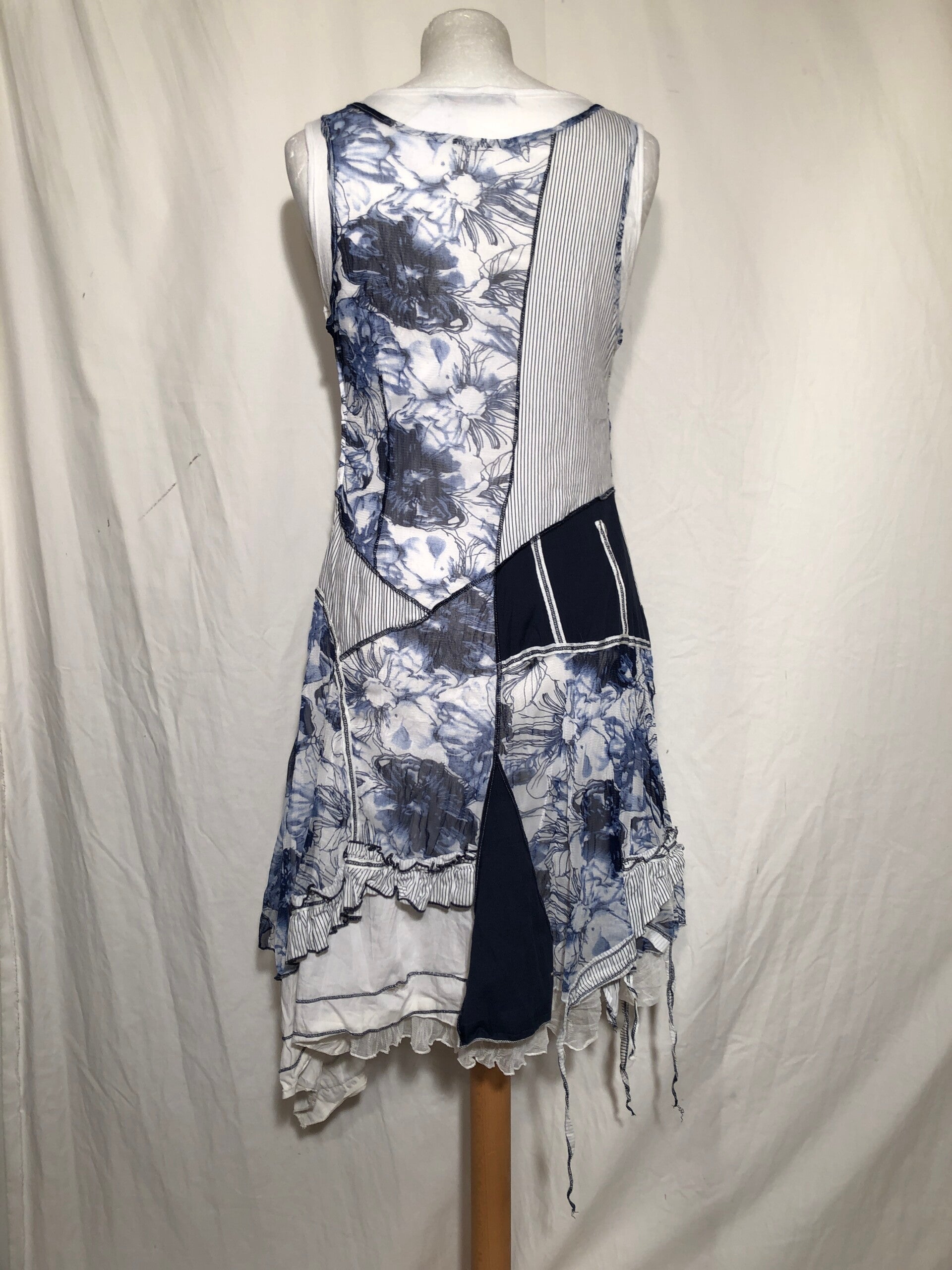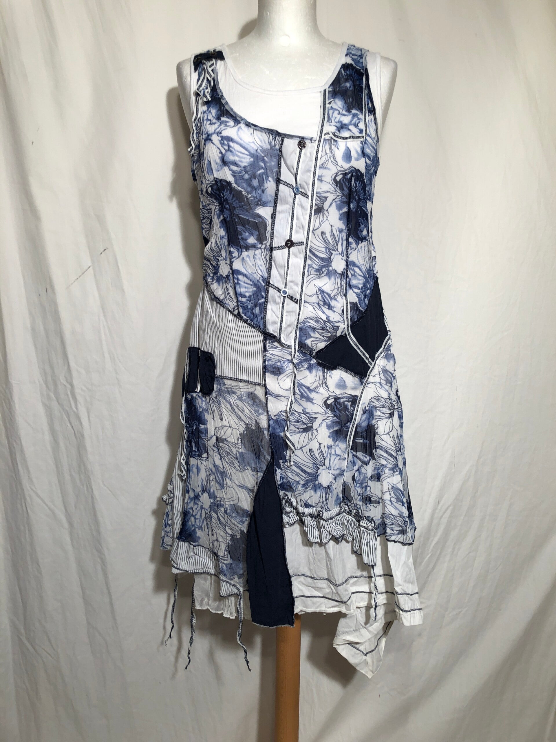 C' Fait pour vous blauw/wit a-symmetrische jurk met koordjes en knoopjes maat M