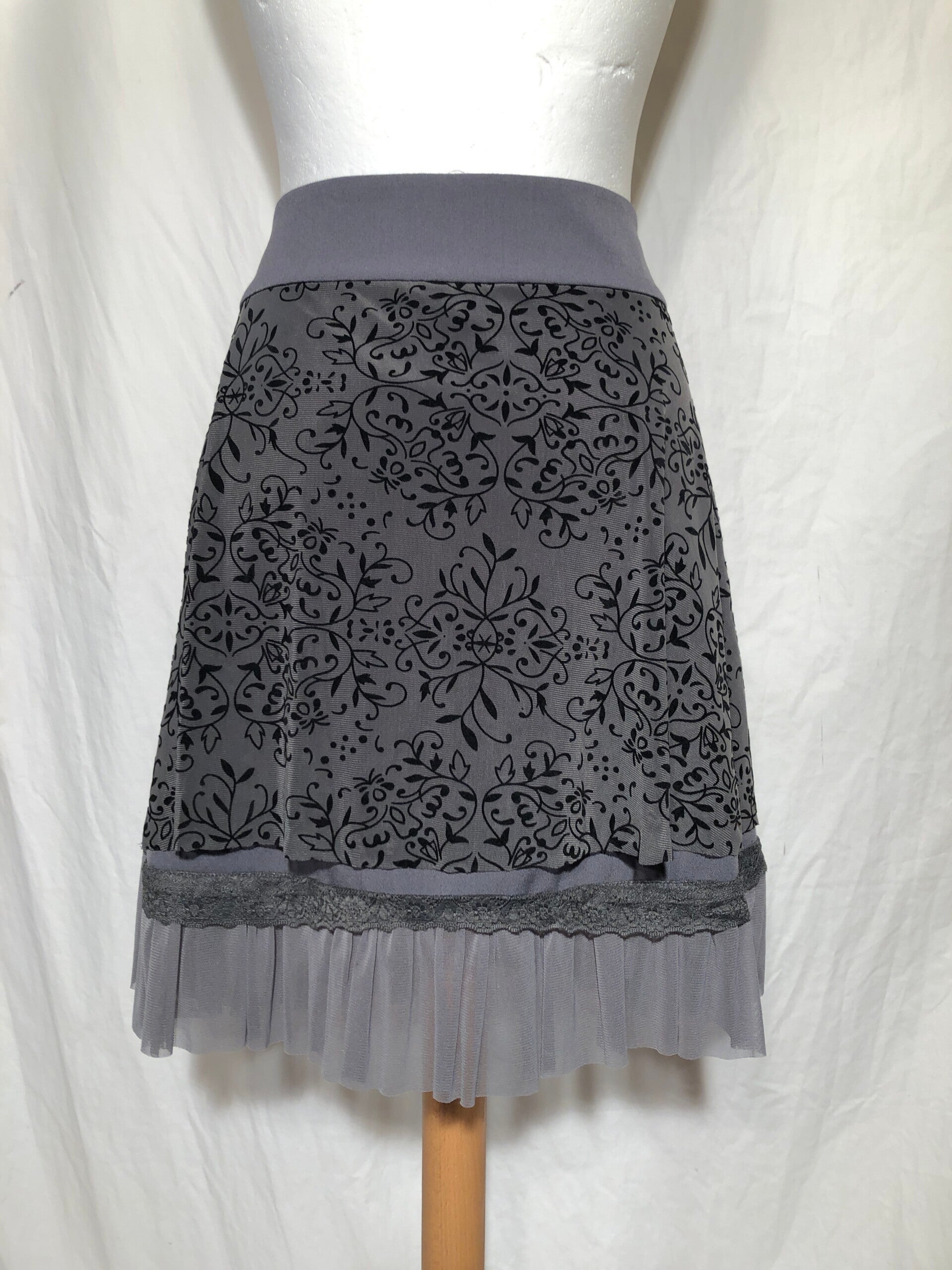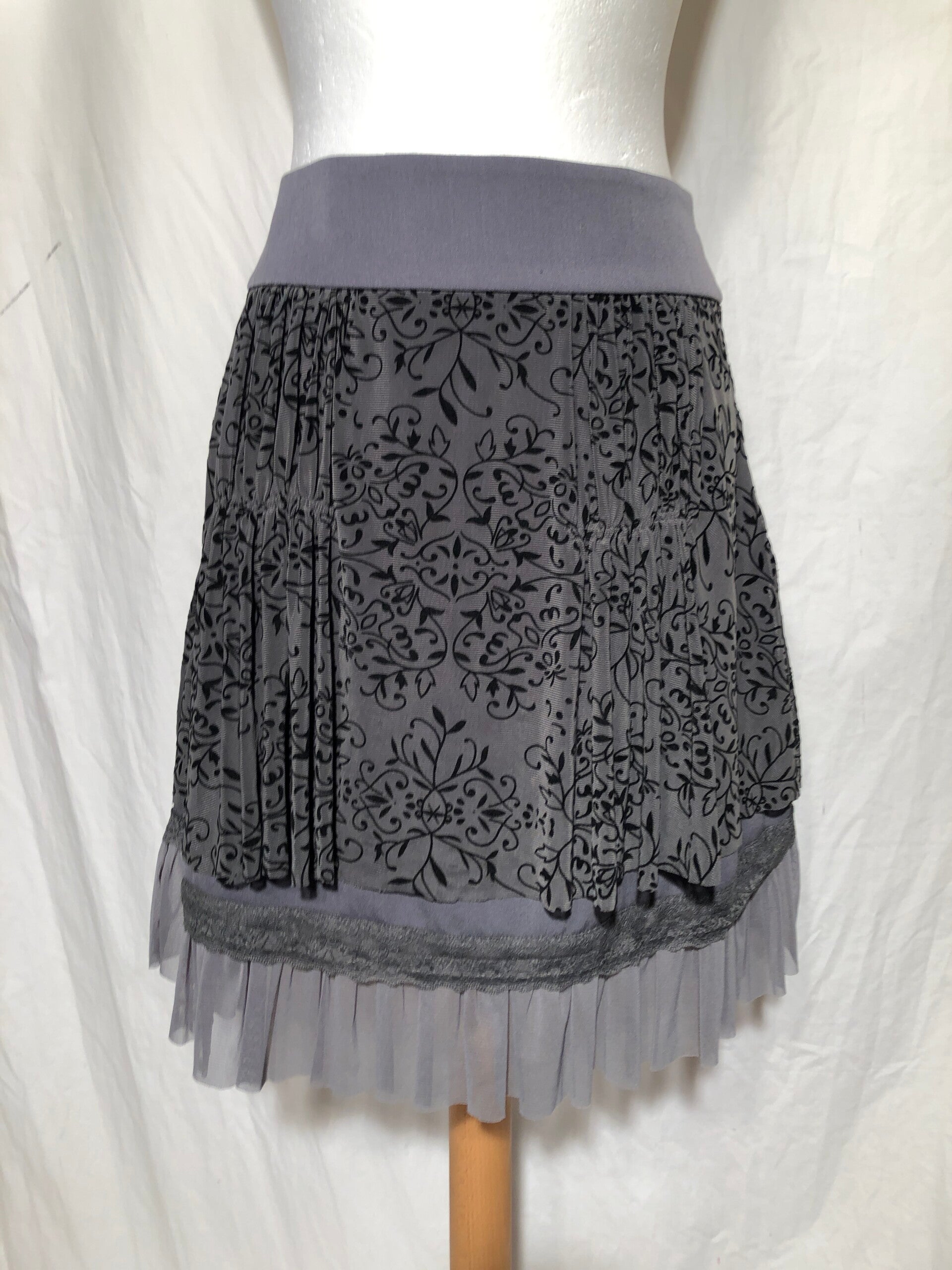 Alice Barnabé by enjoy grijs 2 laags rok met zwarte opdruk en kant bies maat 40