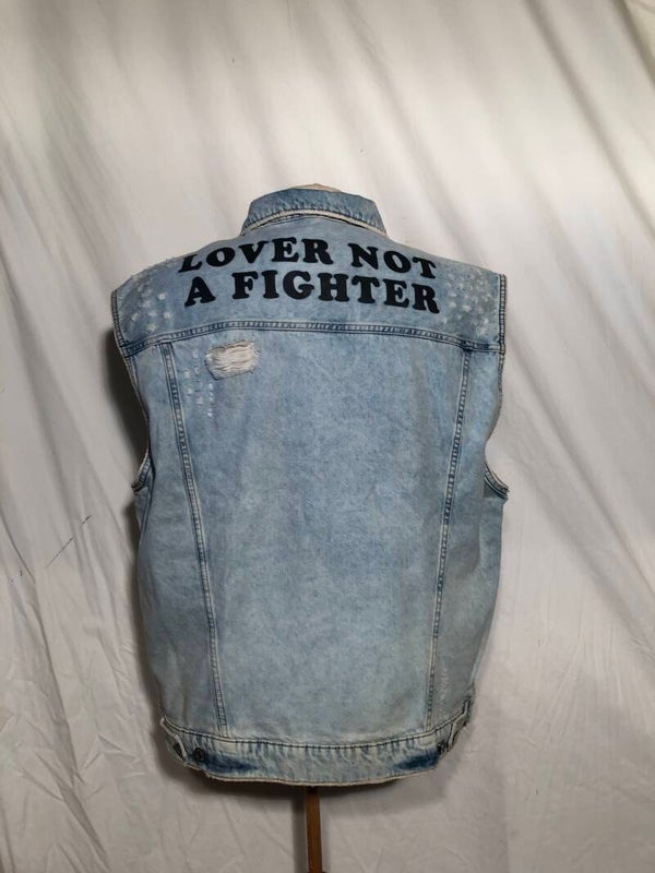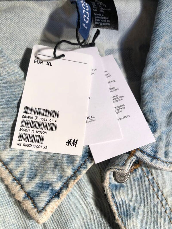 H&M denim jeans gilet met gaten op voor- en achterkant en opdruk op de rug maat XL