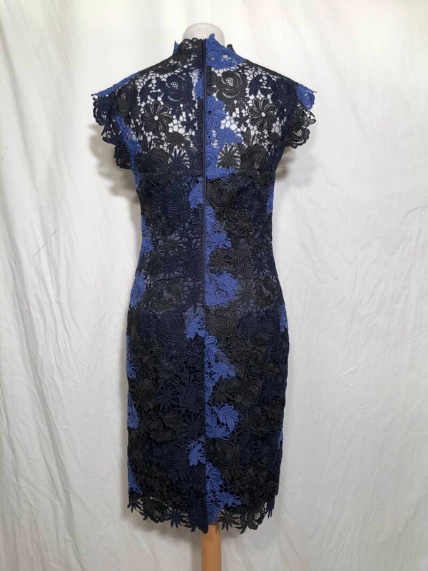 Steps zwart/blauw kanten jurk met vaste onderjurk maat 36