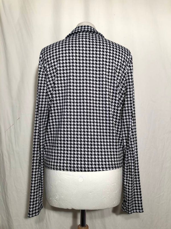 FashionNova zwart/wit print korte krinkel blouse maat XL